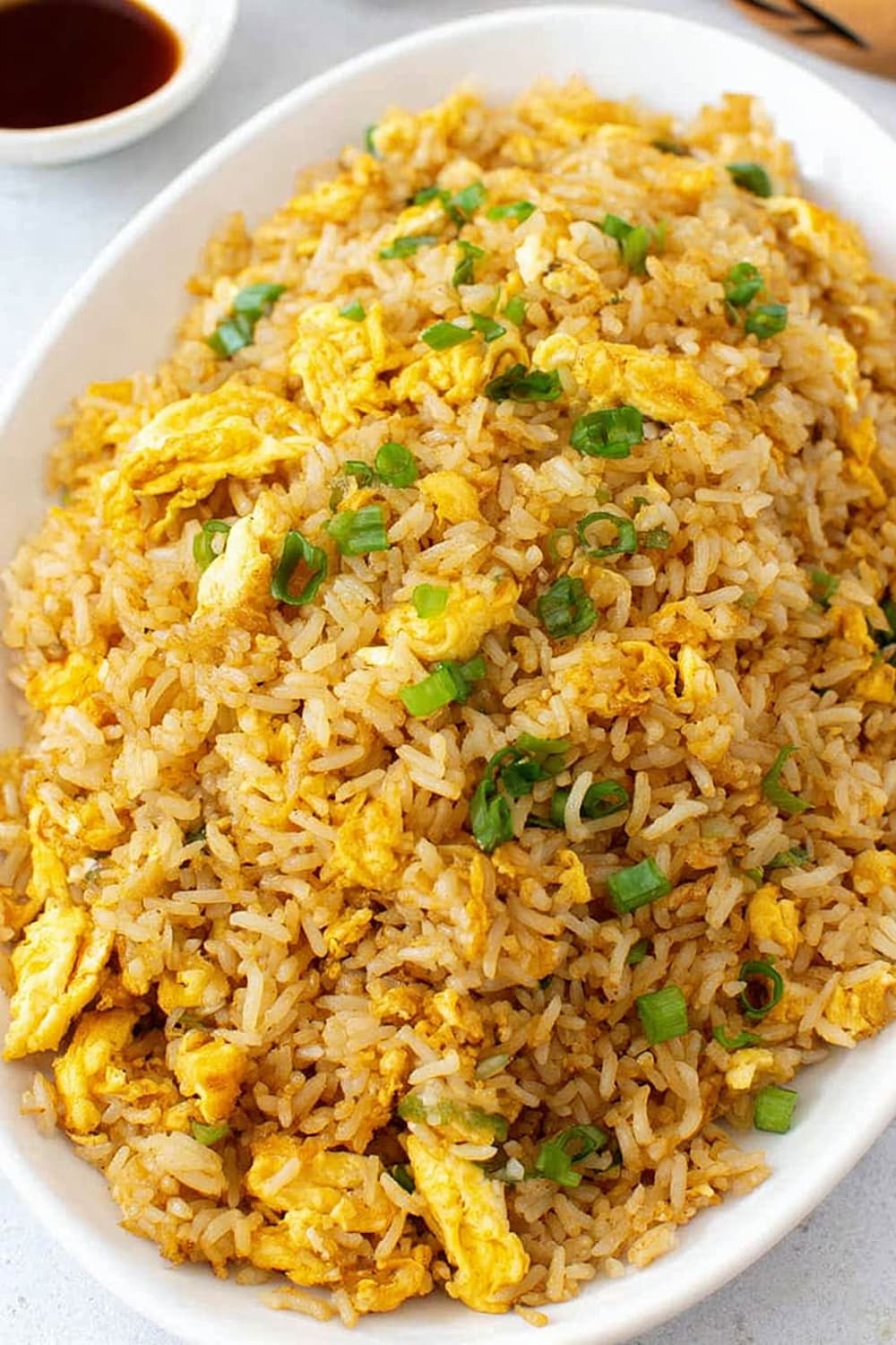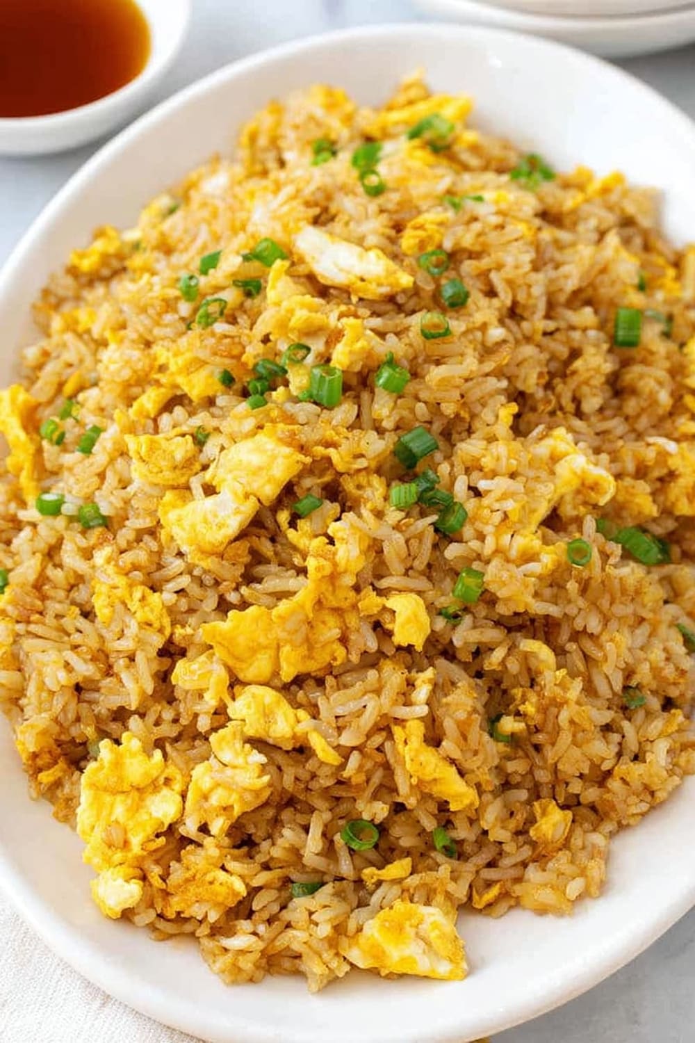 Picture this: fluffy scrambled eggs dancing with perfectly separated grains of rice, each one glossy with sesame oil and kissed with that golden-brown soy sauce magic that makes your kitchen smell like your favorite Chinese restaurant.