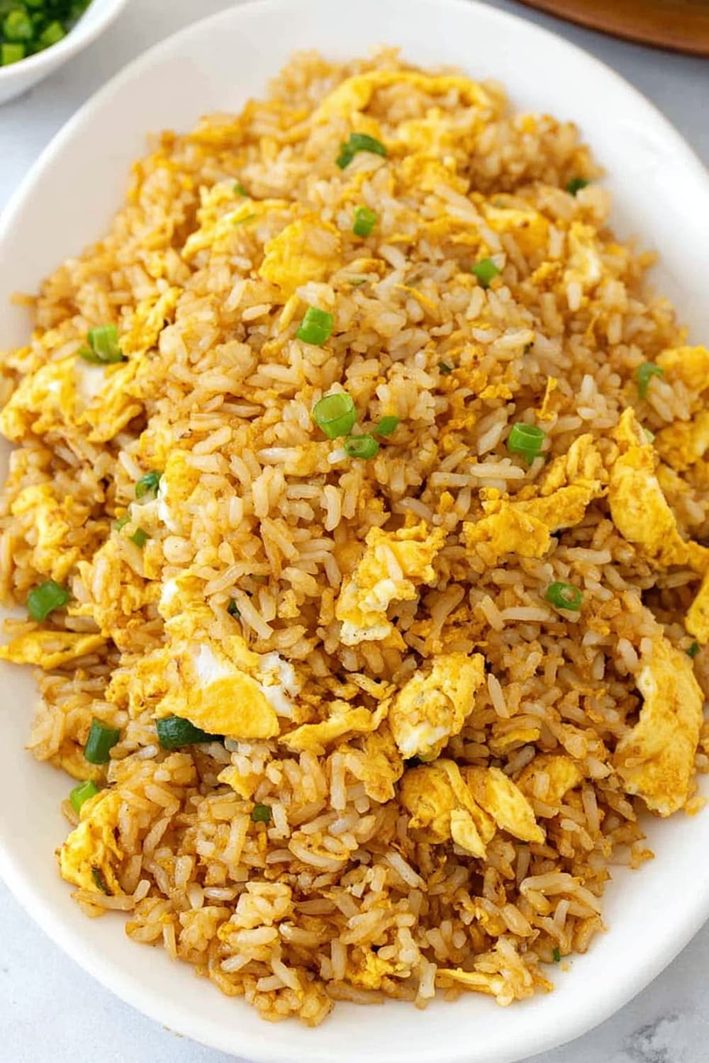 Get ready for that perfect contrast of silky scrambled eggs, toasty rice grains, and the sharp bite of fresh green onions that makes every single bite completely addictive.