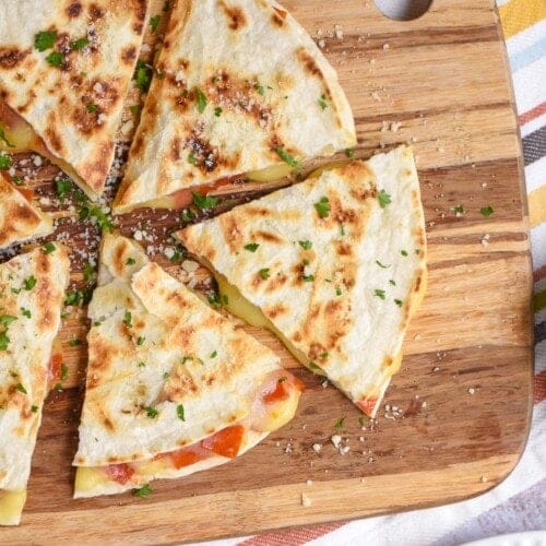 Cut your quesadillas into smaller pieces for easy eating, especially for kids.