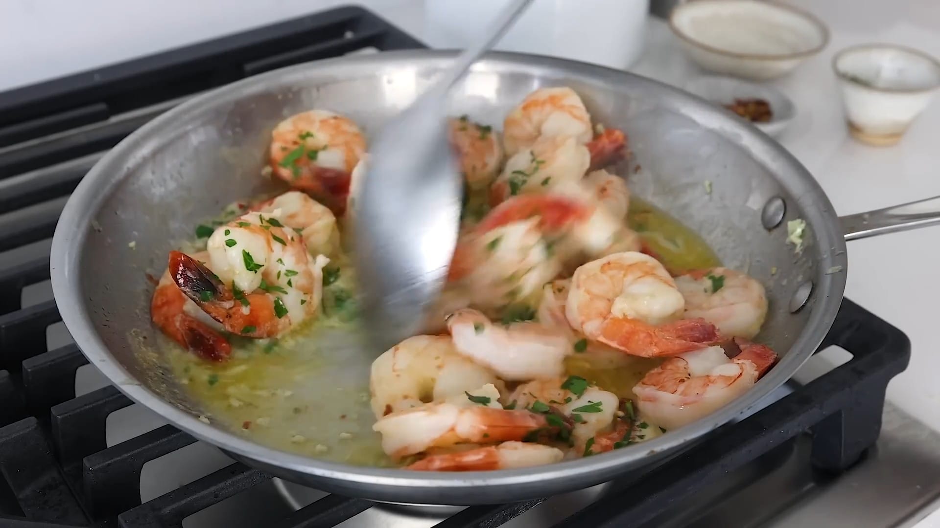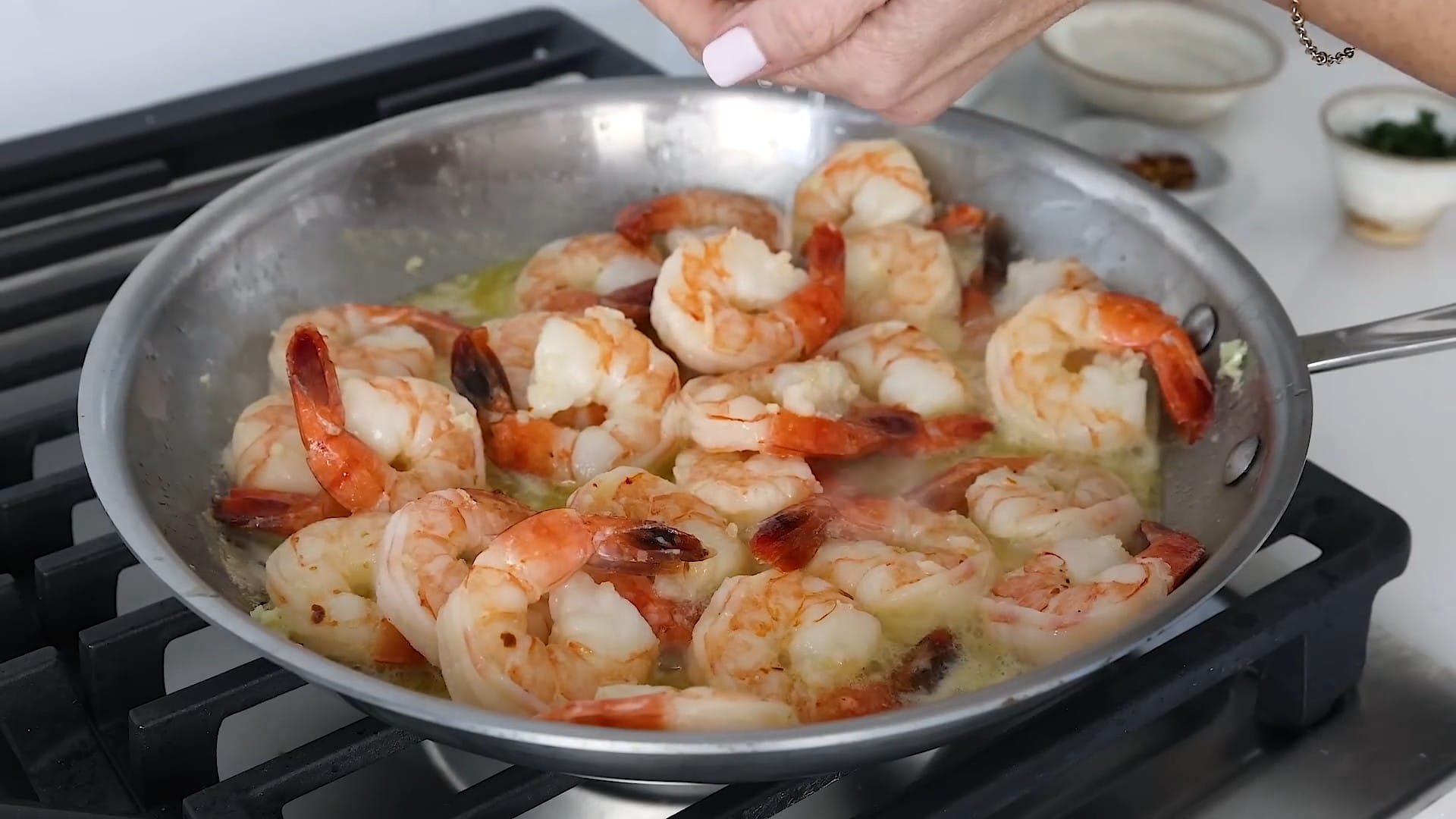 Sauté the shrimp for about 3 minutes, or until cooked through.