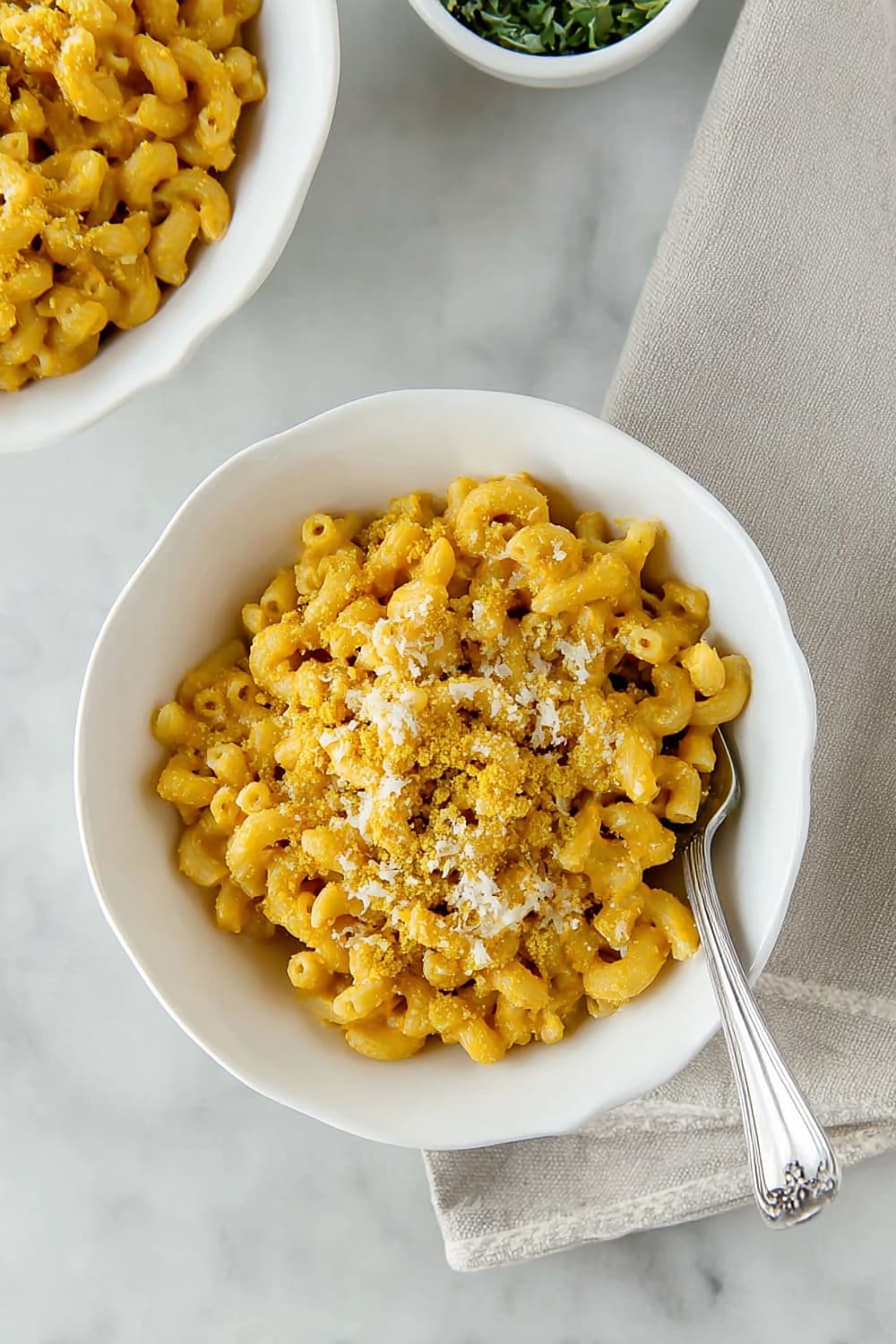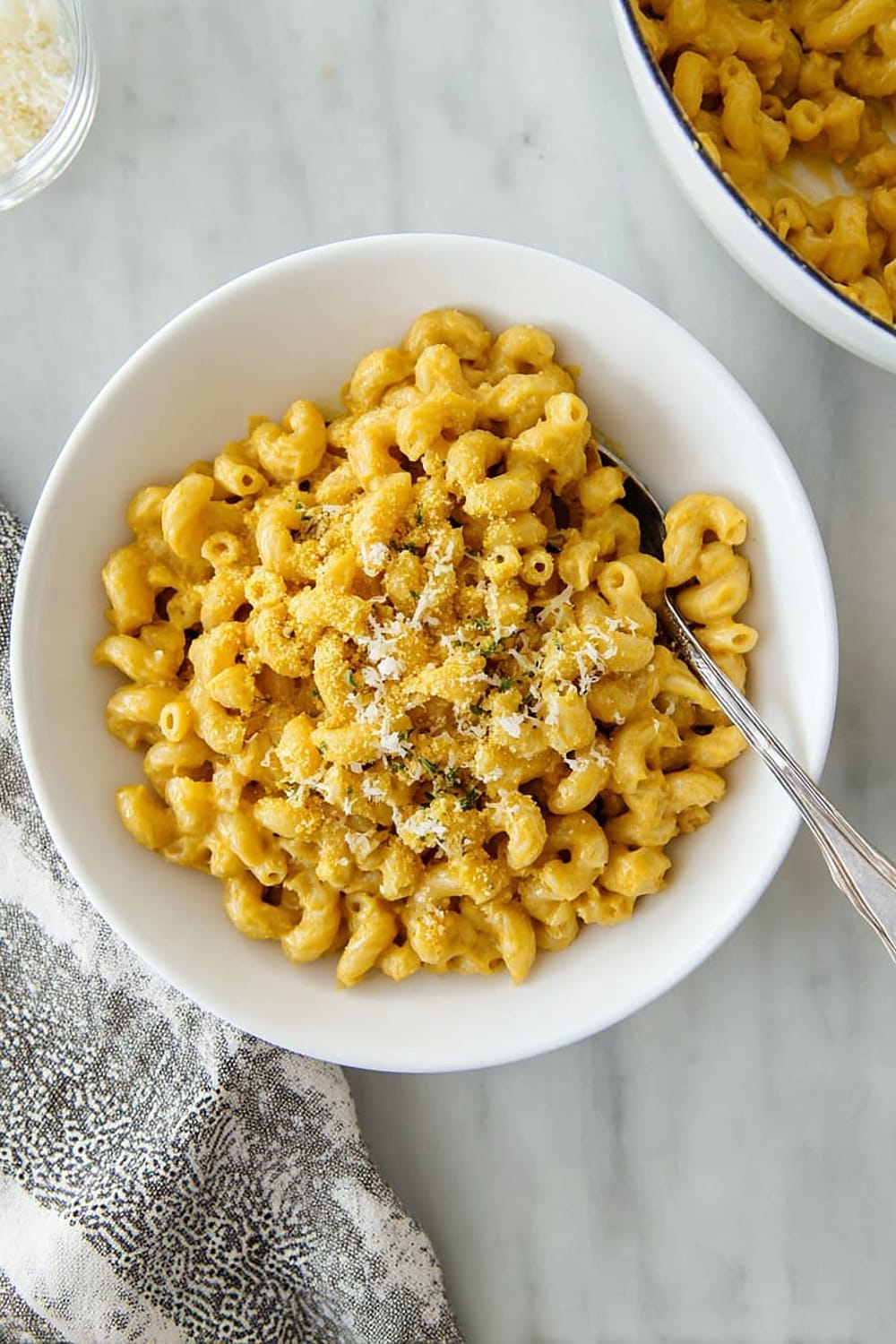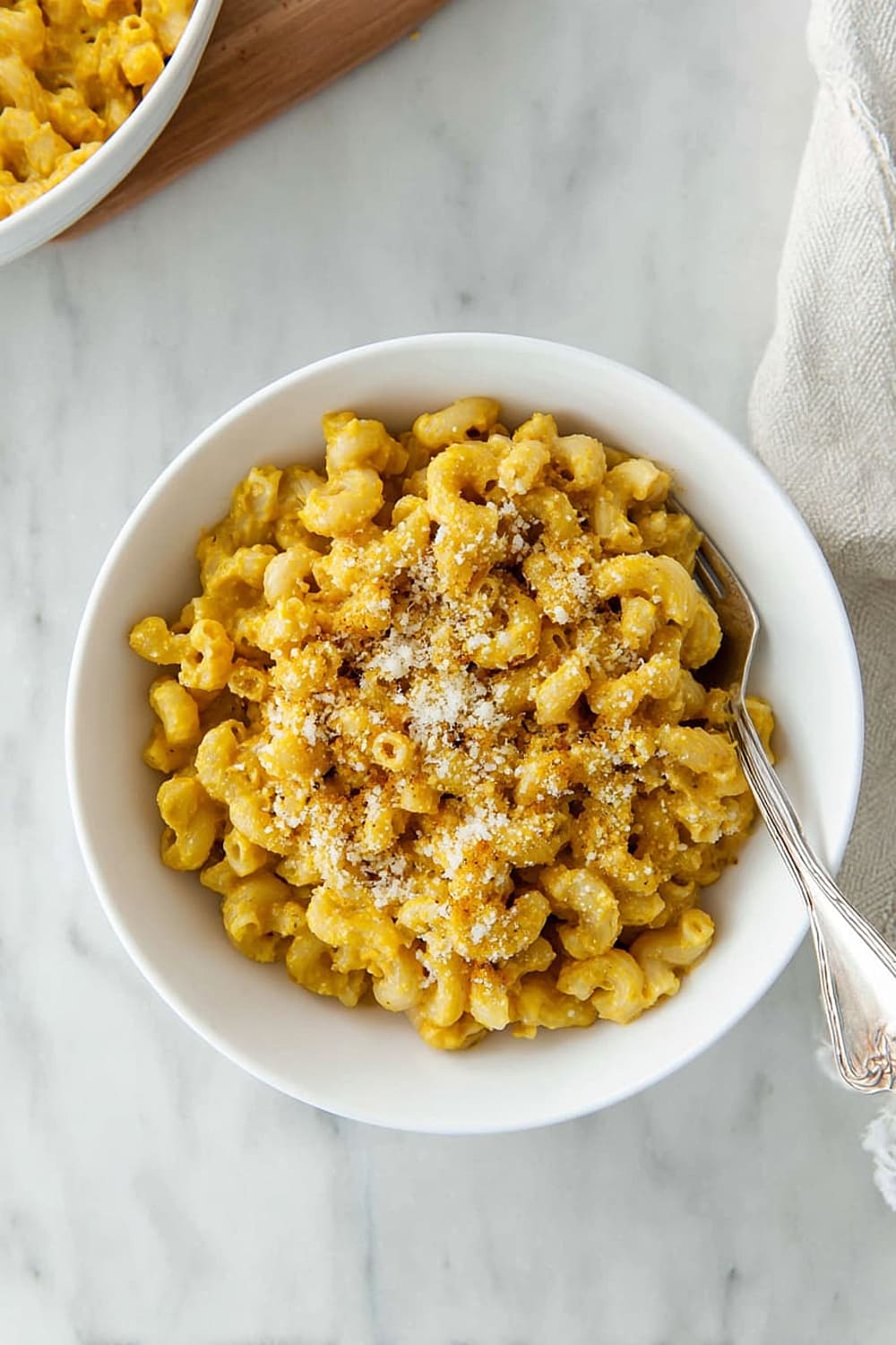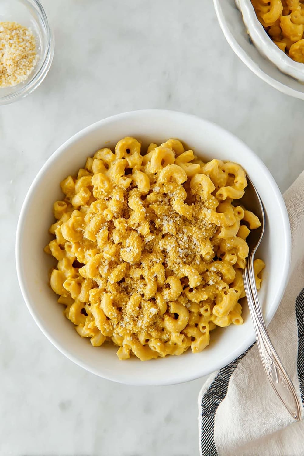 Roasted Brussels sprouts with garlic provide a bitter contrast that balances the rich cheese sauce perfectly. Simple arugula salad with lemon vinaigrette adds peppery freshness and helps cut through the richness. Steamed broccoli or sautéed spinach boost the nutritional value while adding color and texture contrast. Garlic bread made with vegan butter transforms this into an indulgent feast.