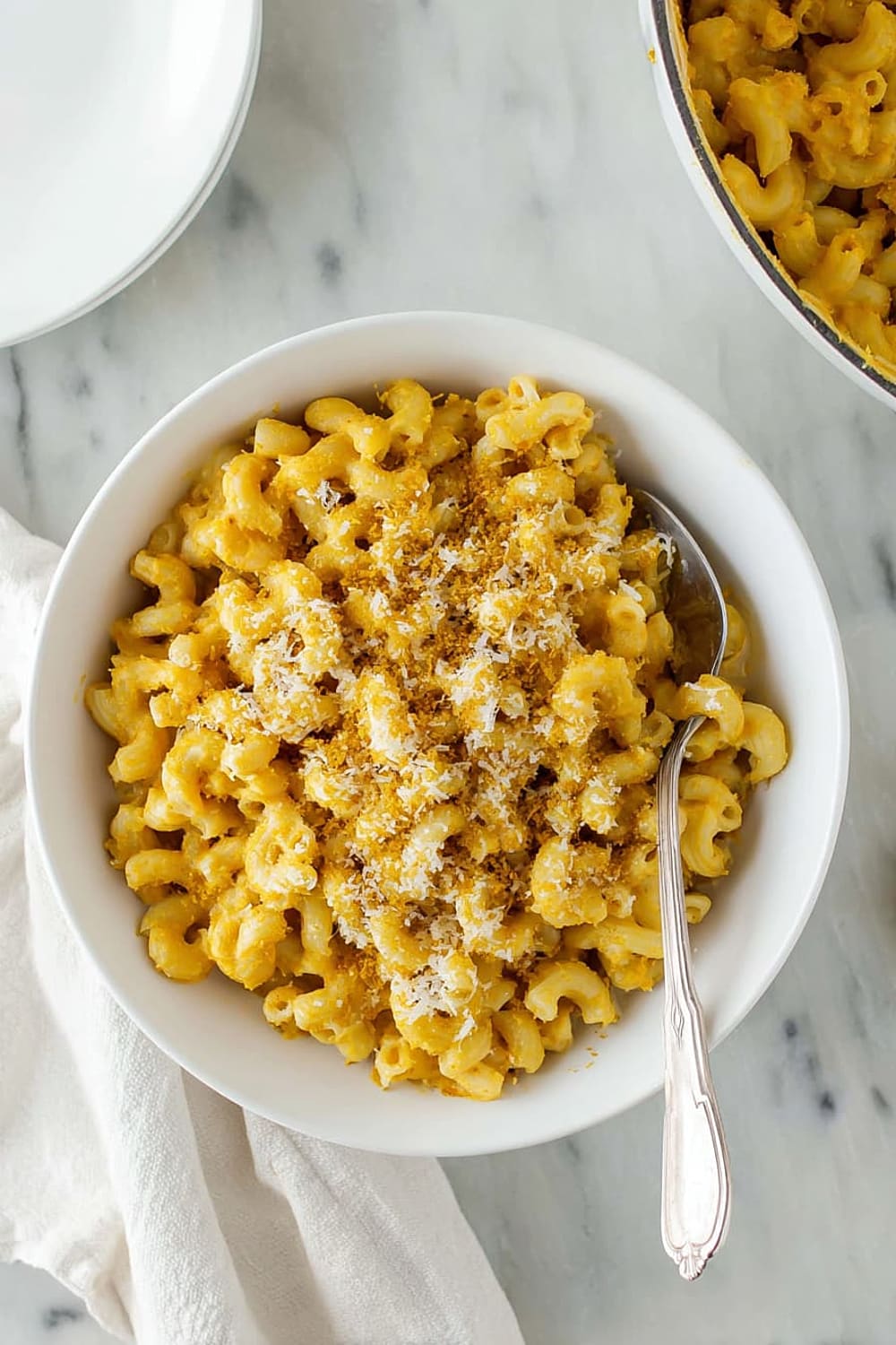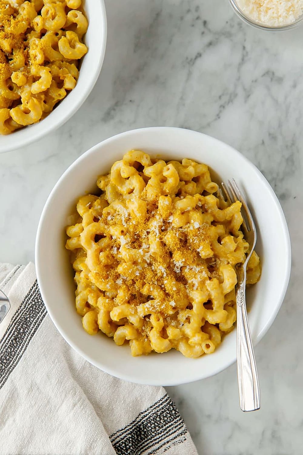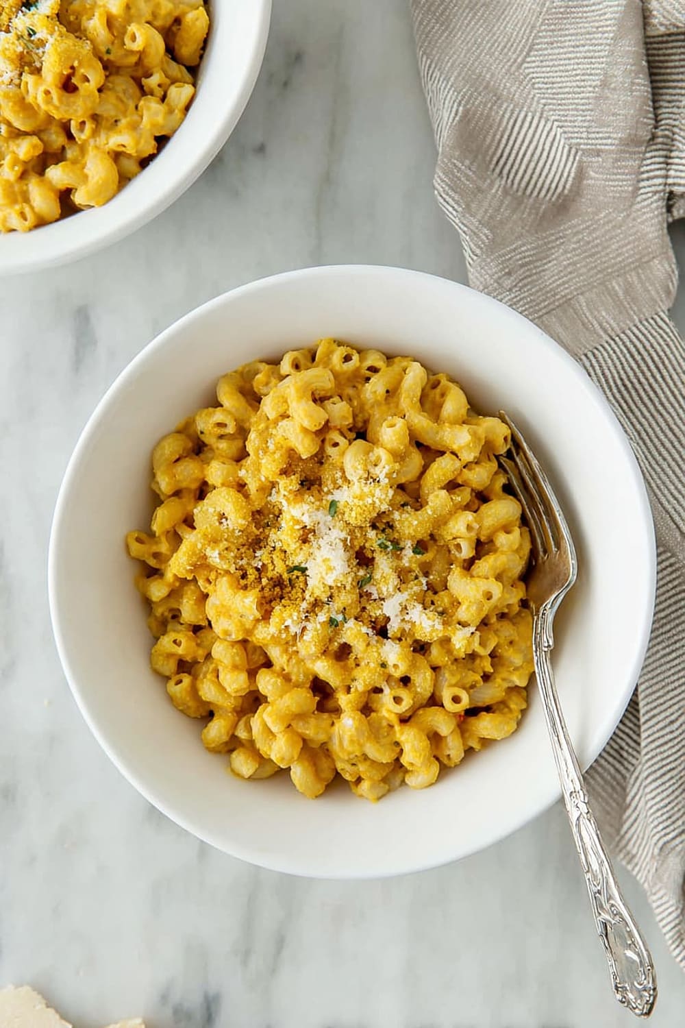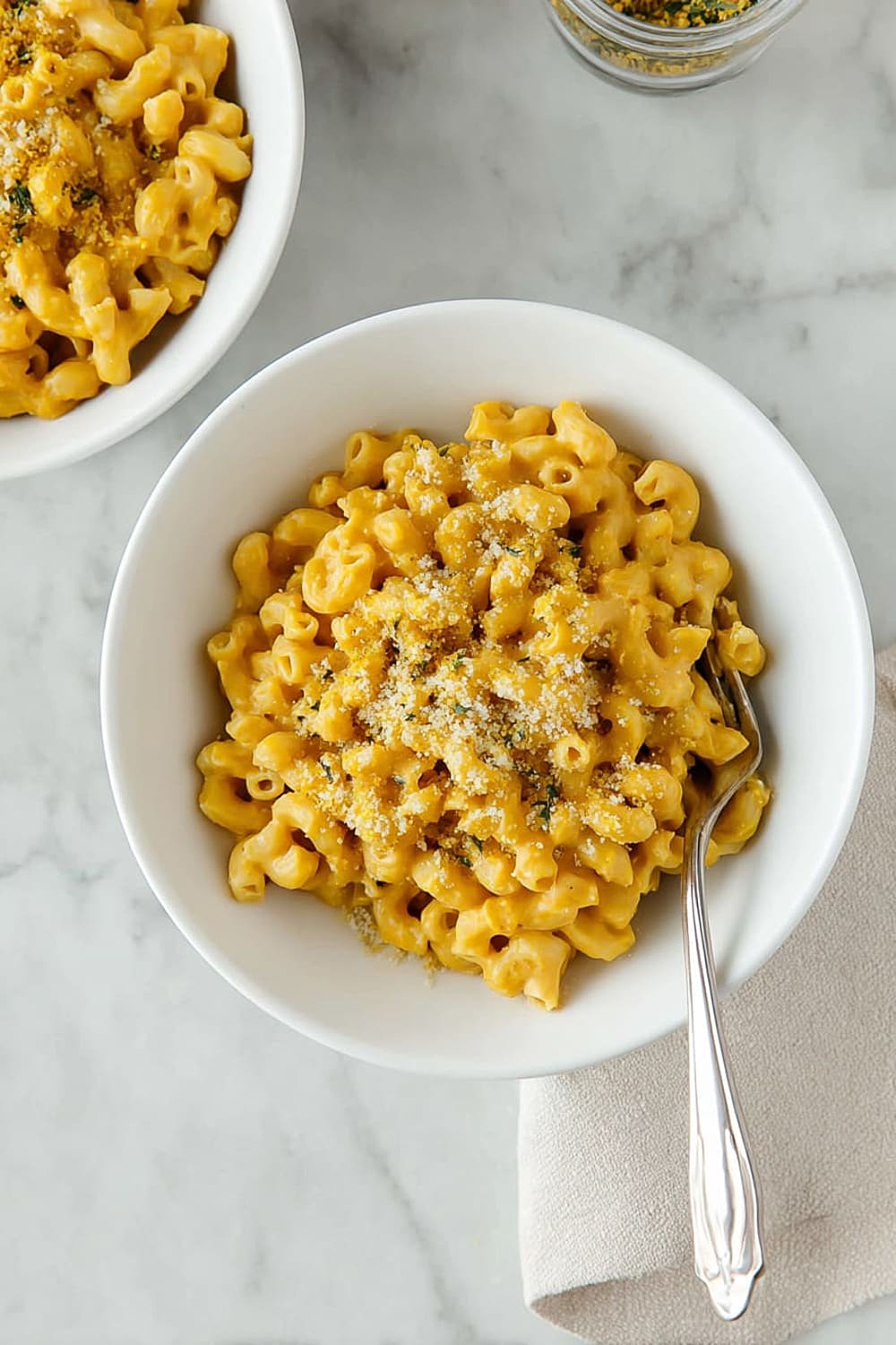 Roasted Brussels sprouts with garlic provide a bitter contrast that balances the rich cheese sauce perfectly. Simple arugula salad with lemon vinaigrette adds peppery freshness and helps cut through the richness. Steamed broccoli or sautéed spinach boost the nutritional value while adding color and texture contrast. Garlic bread made with vegan butter transforms this into an indulgent feast.
