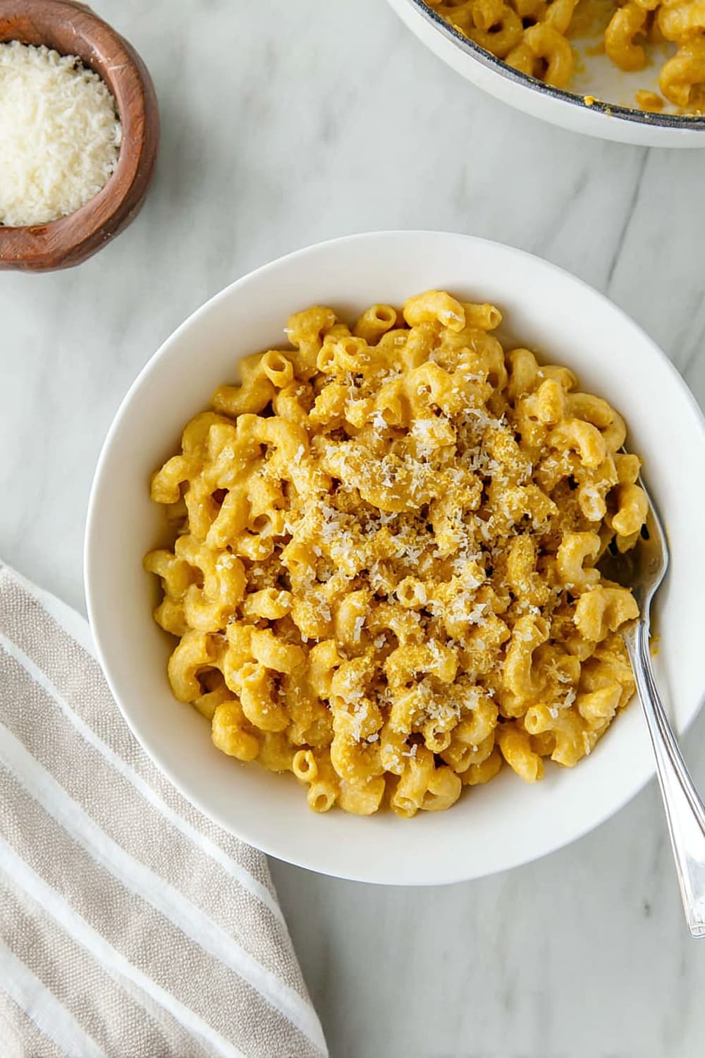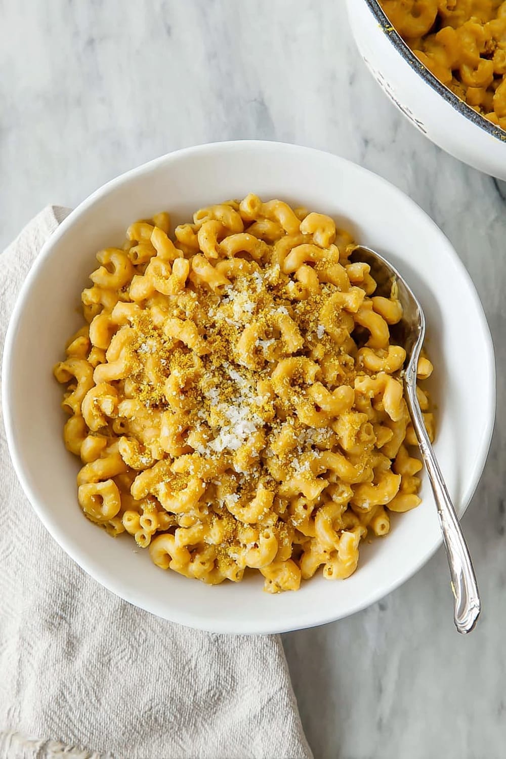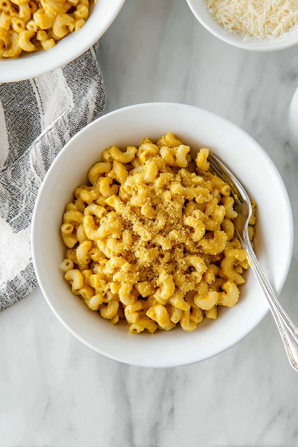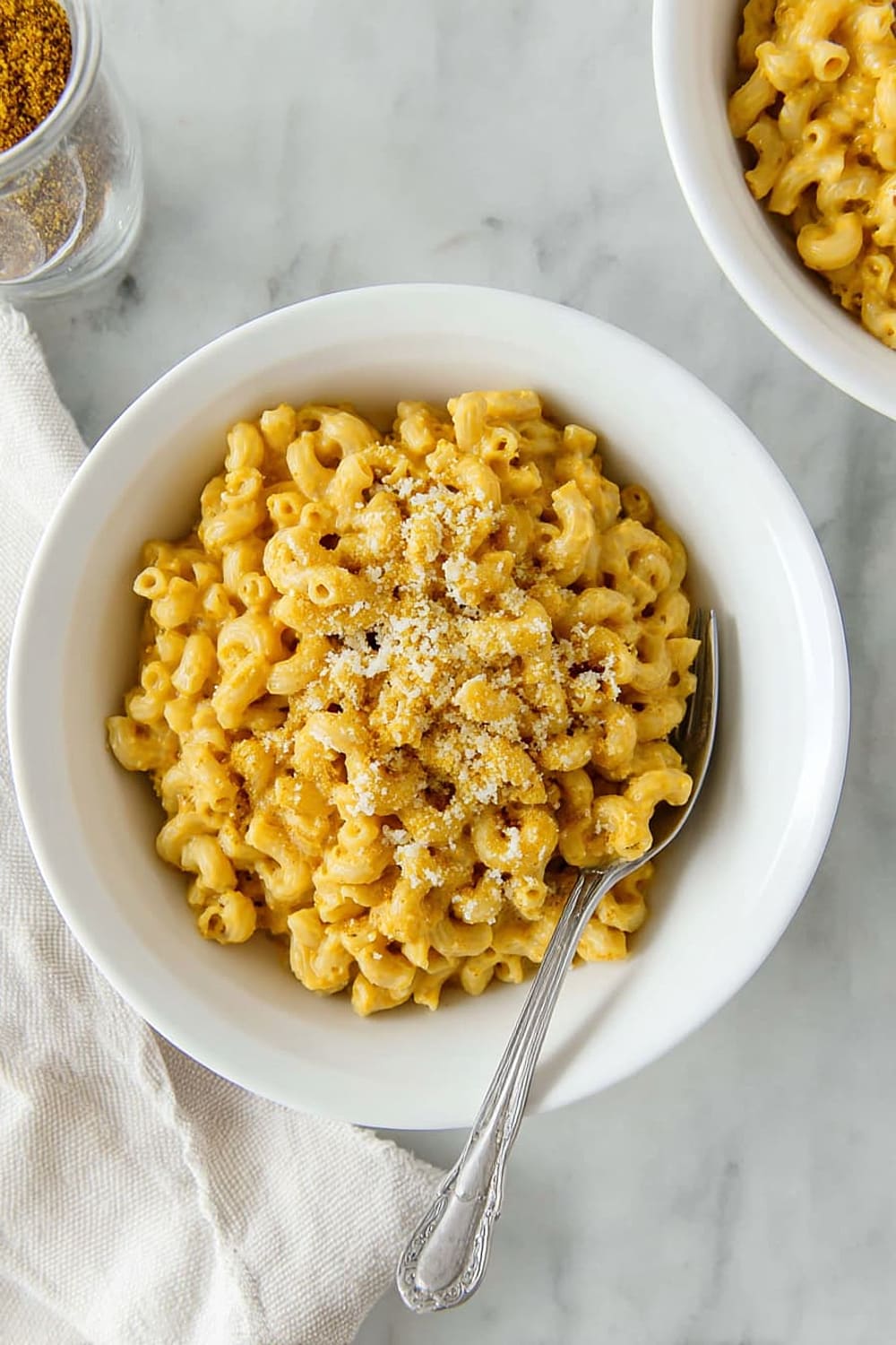 Roasted Brussels sprouts with garlic provide a bitter contrast that balances the rich cheese sauce perfectly. Simple arugula salad with lemon vinaigrette adds peppery freshness and helps cut through the richness. Steamed broccoli or sautéed spinach boost the nutritional value while adding color and texture contrast. Garlic bread made with vegan butter transforms this into an indulgent feast.