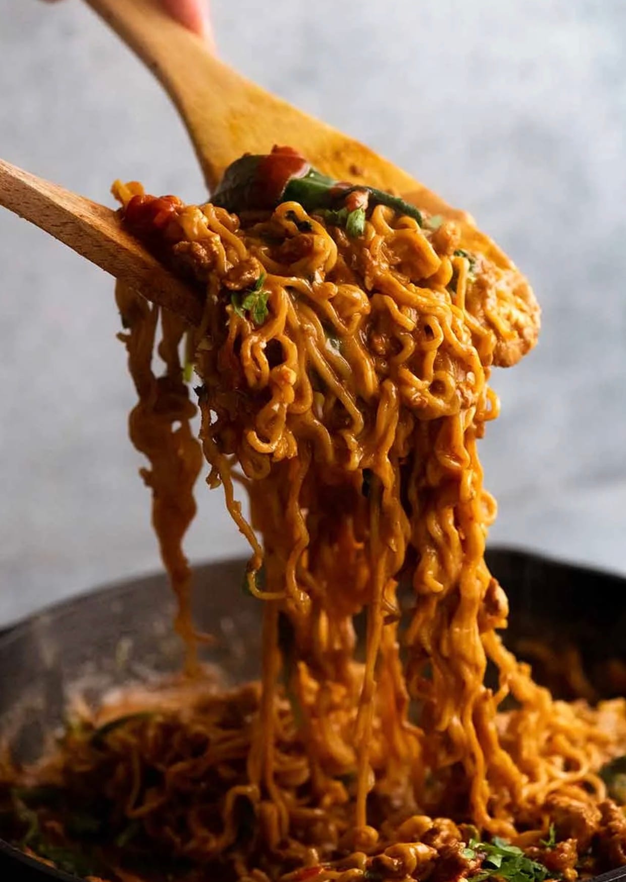 Tip: Work quickly so the noodles don’t absorb all the sauce. If they do, just add a splash of water to thin it out.
