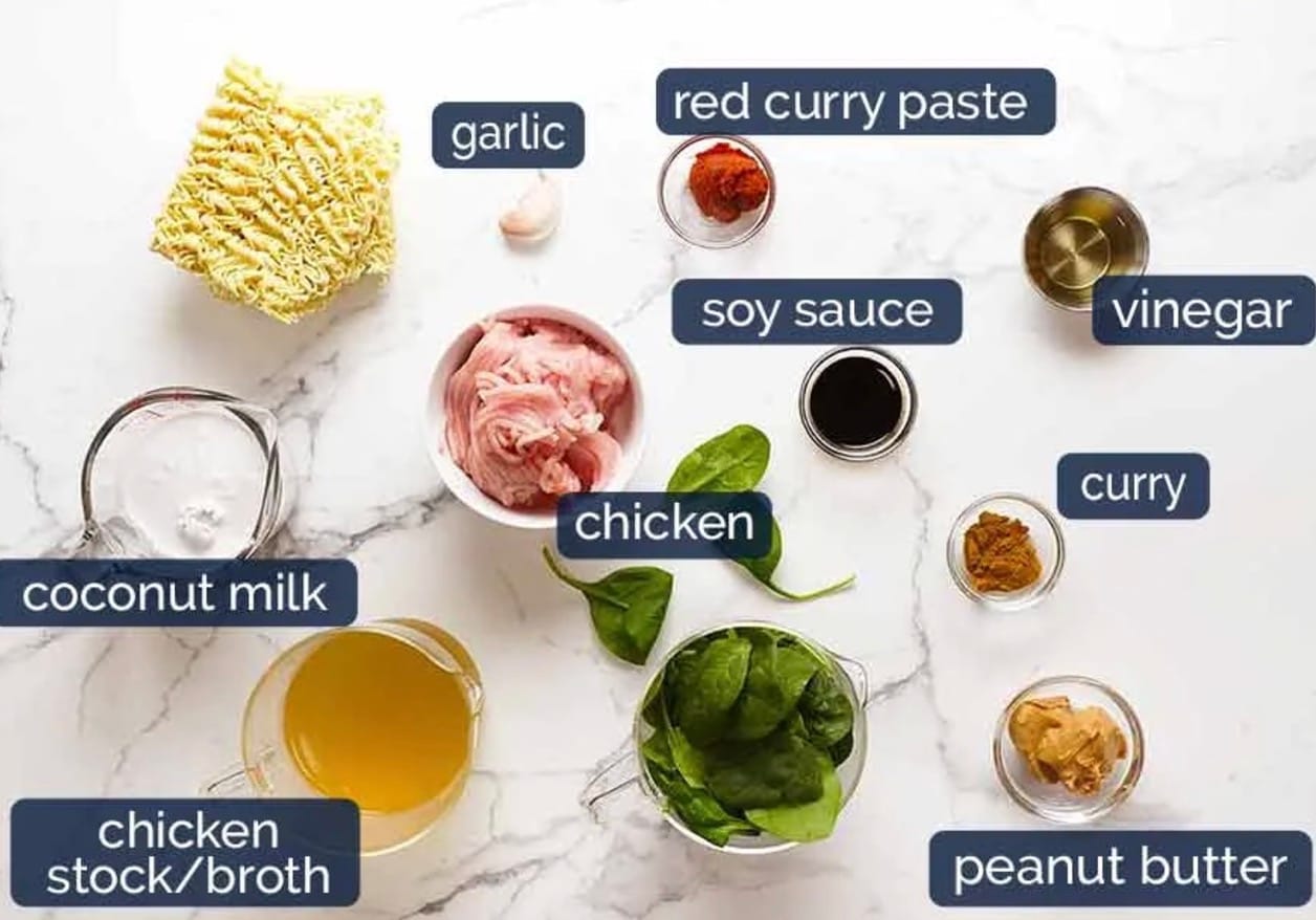 Here’s what you’ll need for these quick and tasty Thai Chicken Peanut Noodles: