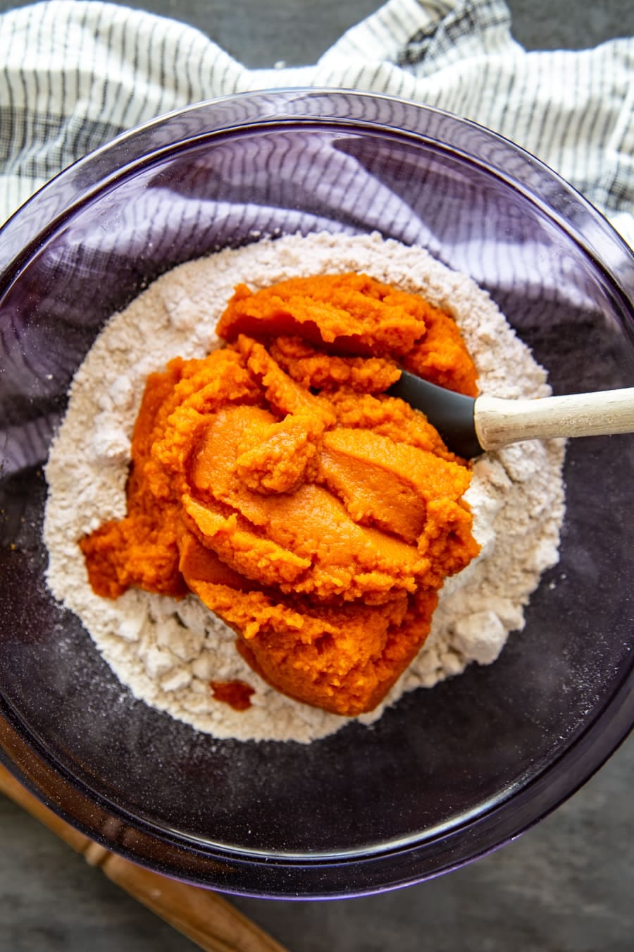 That’s it! No eggs, oil, or other add-ins required. The pumpkin replaces the usual wet ingredients.