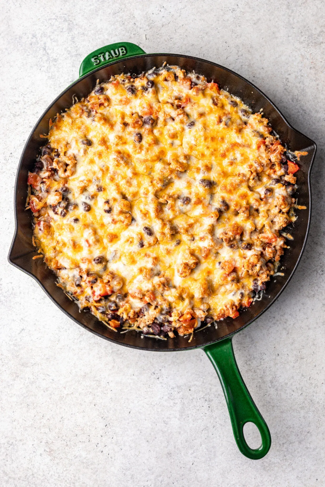 Place skillet under the broiler for 2-3 minutes. Watch closely until cheese is melted and bubbly.