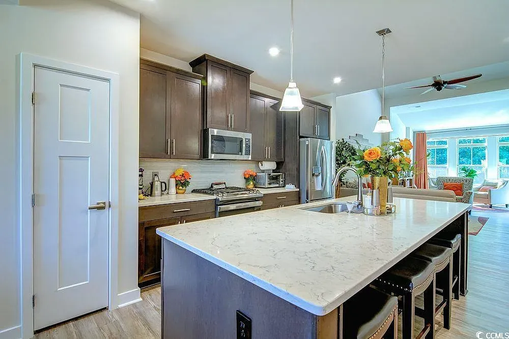Located at 7 Moss Hollow Way, Unit 7, in Simpsonville, SC, this 2,077 sq ft patio home offers 3 bedrooms and 3 bathrooms. Built in 2021, this townhouse-style single-family residence sits on a 3,049.2 sq ft lot and boasts a desirable open concept floor plan. The residence features a main-level primary suite with a his-and-hers vanity and walk-in closet. Upstairs, find two guest bedrooms and a versatile loft area.