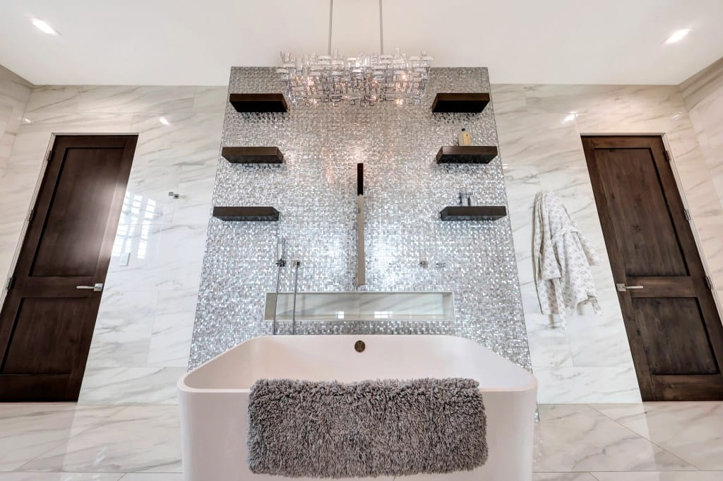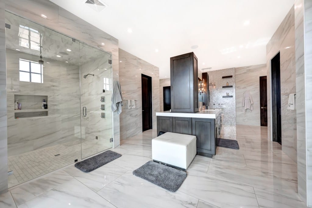 The HardtSeasons estate, situated on nearly 5 acres, offers a luxurious lifestyle with premium amenities. The 21,410 sq. ft. main residence features five spacious bedrooms and 18 elegant bathrooms, providing ample space for family and guests. Built seven years ago, this fully furnished home boasts an abundance of natural light and seamlessly integrates indoor-outdoor living. This entertainer’s dream features two resort-style pools, outdoor TVs, and a full bar with dramatic fire and water features. The formal living room, with its soaring ceilings and expansive windows, offers the perfect space for gatherings. Other highlights include a regulation-size underground basketball gym that can be converted into a pickleball court, a “Jordan Room” designed to showcase a collection of 290 Michael Jordan sneakers, and a golf practice area with a 9-hole putting green. The property also offers a state-of-the-art golf simulator and a luxurious movie theatre. Enjoy the prime location, luxury finishes, and open concept design, along with Costa Rican-inspired wood ceilings and Chicago brick accents, and the convenience of the Elan Control System, all contributing to effortless modern living. The state-of-the-art gourmet kitchen includes three Wolf ovens, including a conduction model optimal for gourmet cooking. A jogging track encircles the entire property, measuring 3/10 of a mile.
