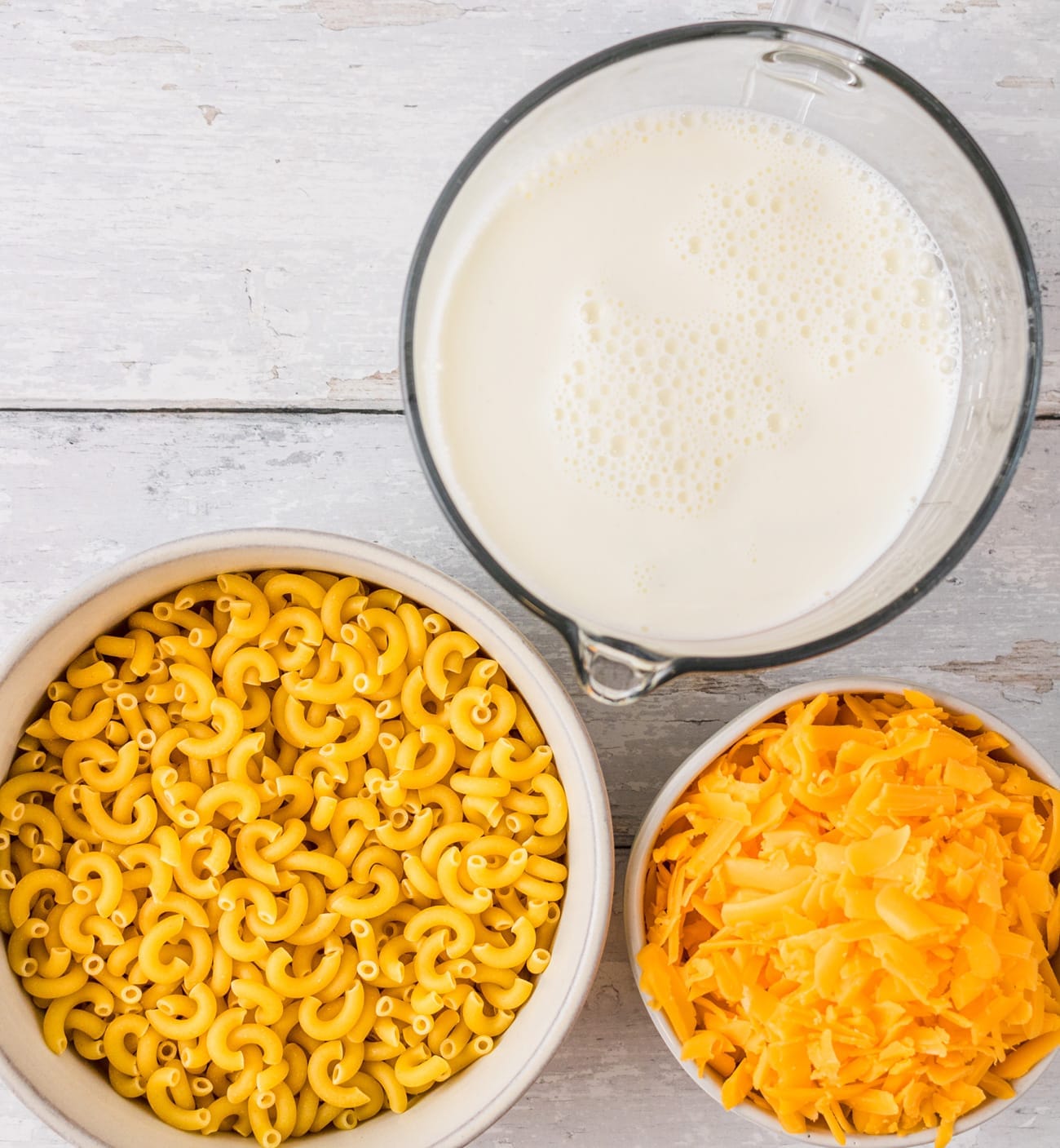 You’ll need milk, macaroni, and cheese. That’s it! Cook the pasta in milk, add cheese, and you’re done. It’s so simple and delicious, you might never go back to boxed mac and cheese again.