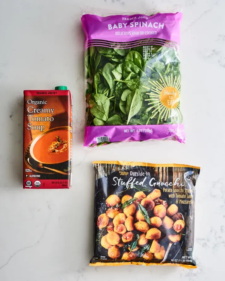 - 1 package (16 oz) Trader Joe’s frozen Outside-In Stuffed Gnocchi