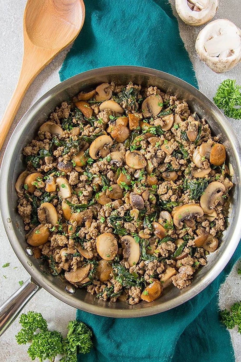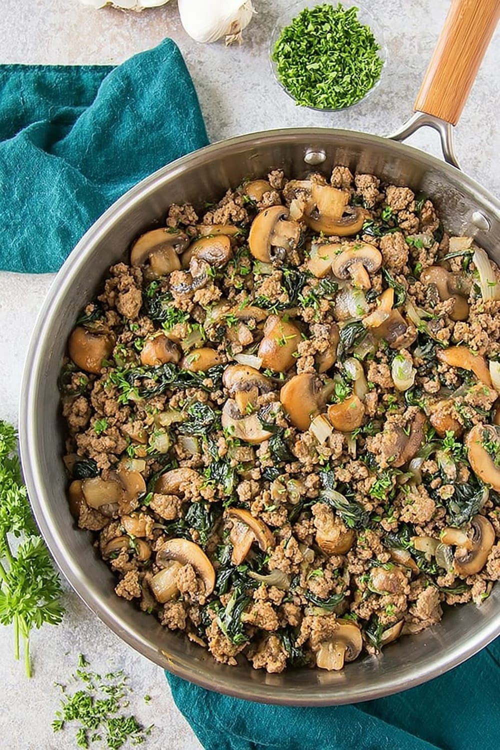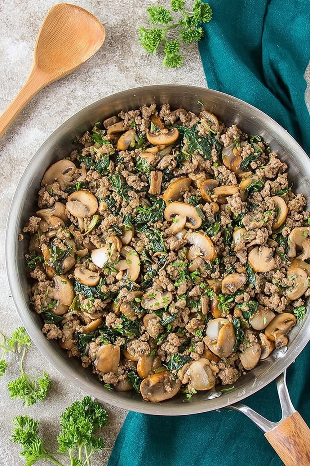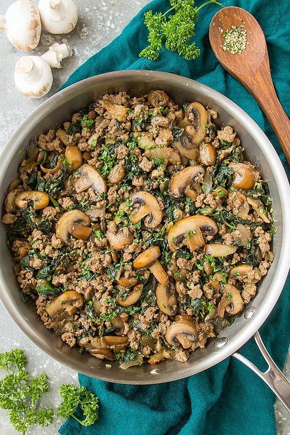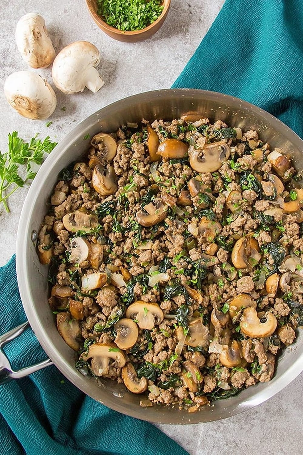 Watery mushrooms happen when the heat is too low or the pan is overcrowded – keep the heat at medium-high and give them space. Overcooked spinach becomes slimy, so add it at the very end and just wilt it. Bland flavor usually means not enough salt – season in layers throughout cooking, not just at the end.