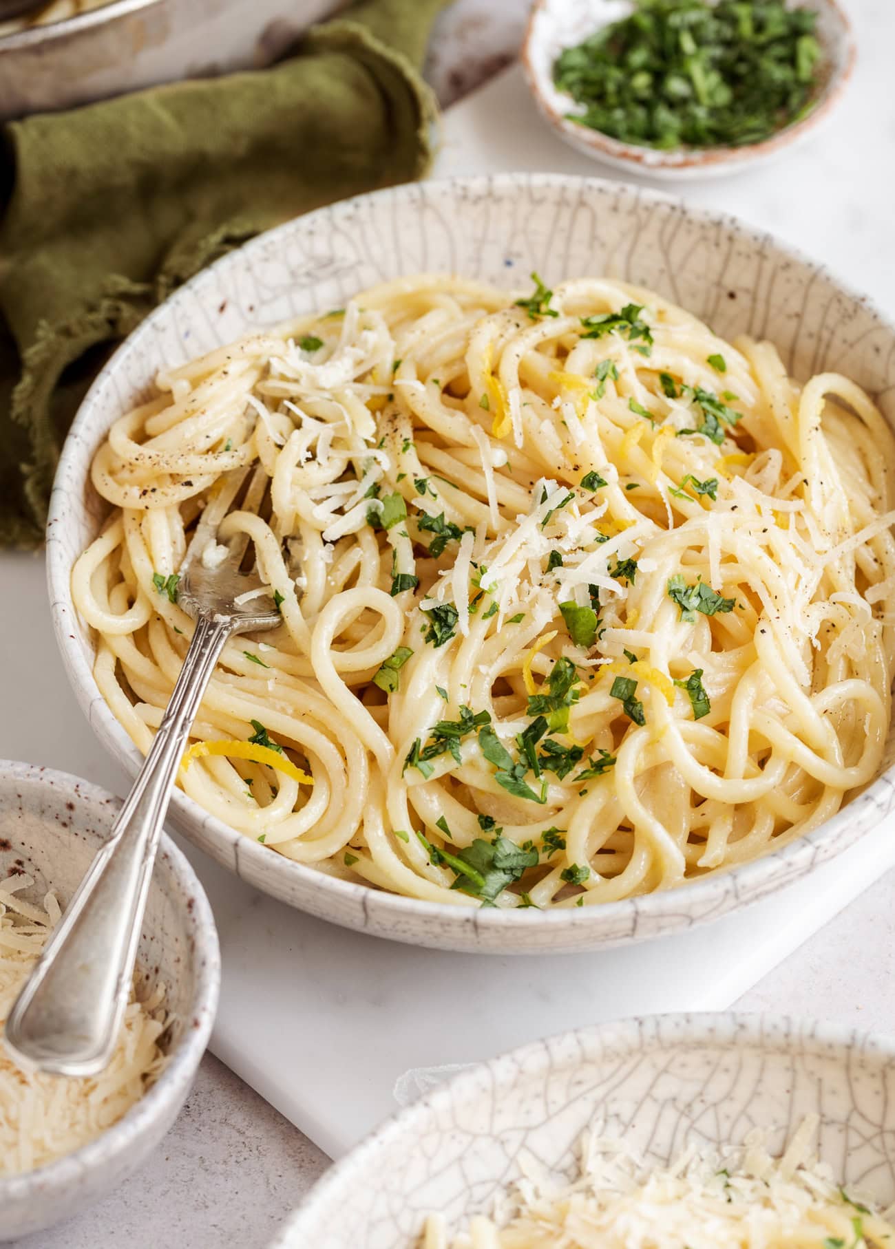 Make sure your pasta water is very starchy. This helps create a silky sauce. Don’t rinse the pasta after cooking.