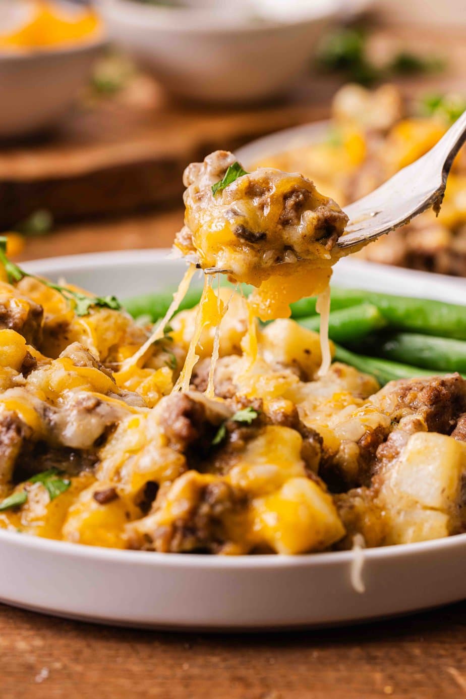 Your casserole is done when it’s hot and bubbly. Let it cool a bit before serving. Enjoy your hearty meal!