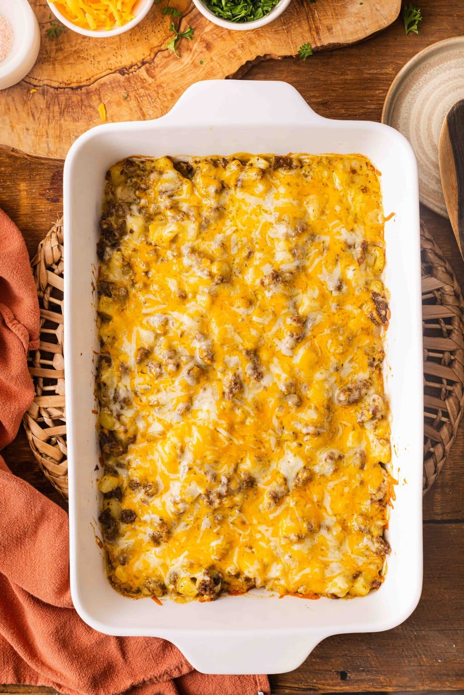 You can easily customize this casserole to suit your tastes. Try swapping the ground beef for turkey or adding some diced onions for extra flavor.