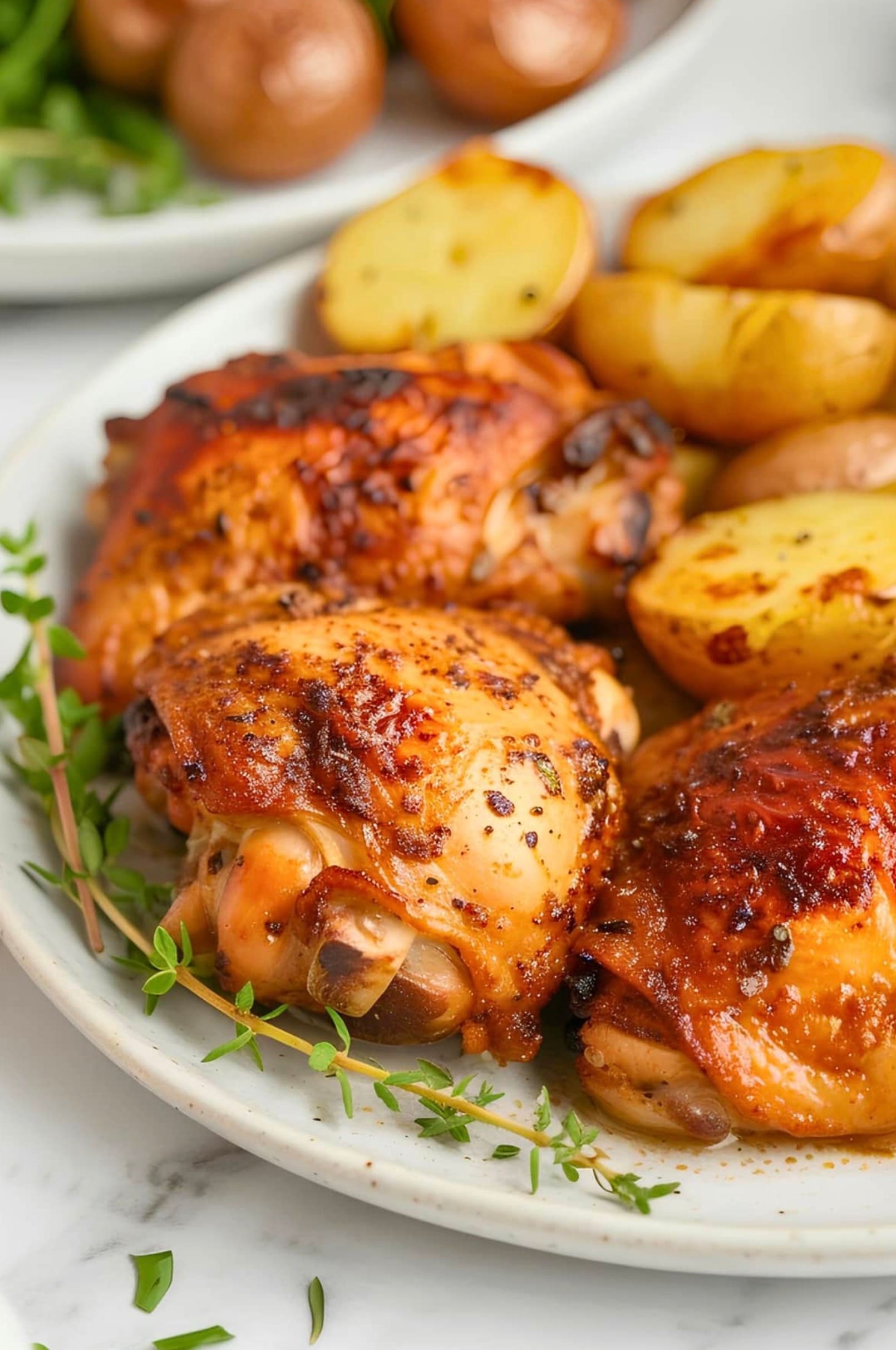 For extra crispy skin, pat the chicken thighs dry with paper towels before seasoning. This removes excess moisture and helps the skin get crispy.