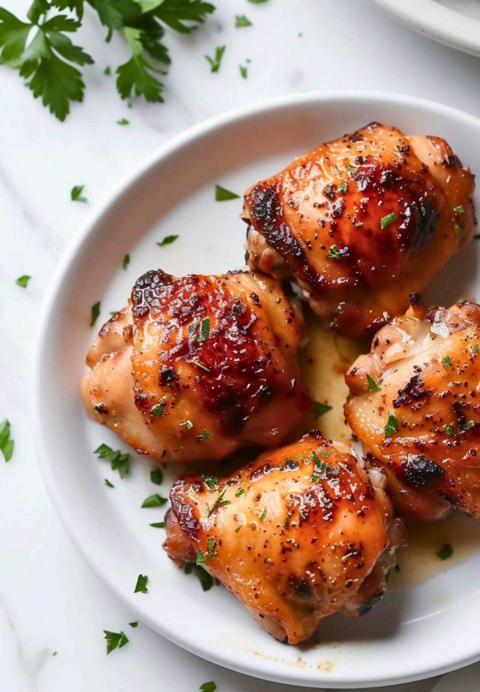 Serve your crispy, juicy chicken thighs with your favorite sides. Enjoy your quick and easy meal!