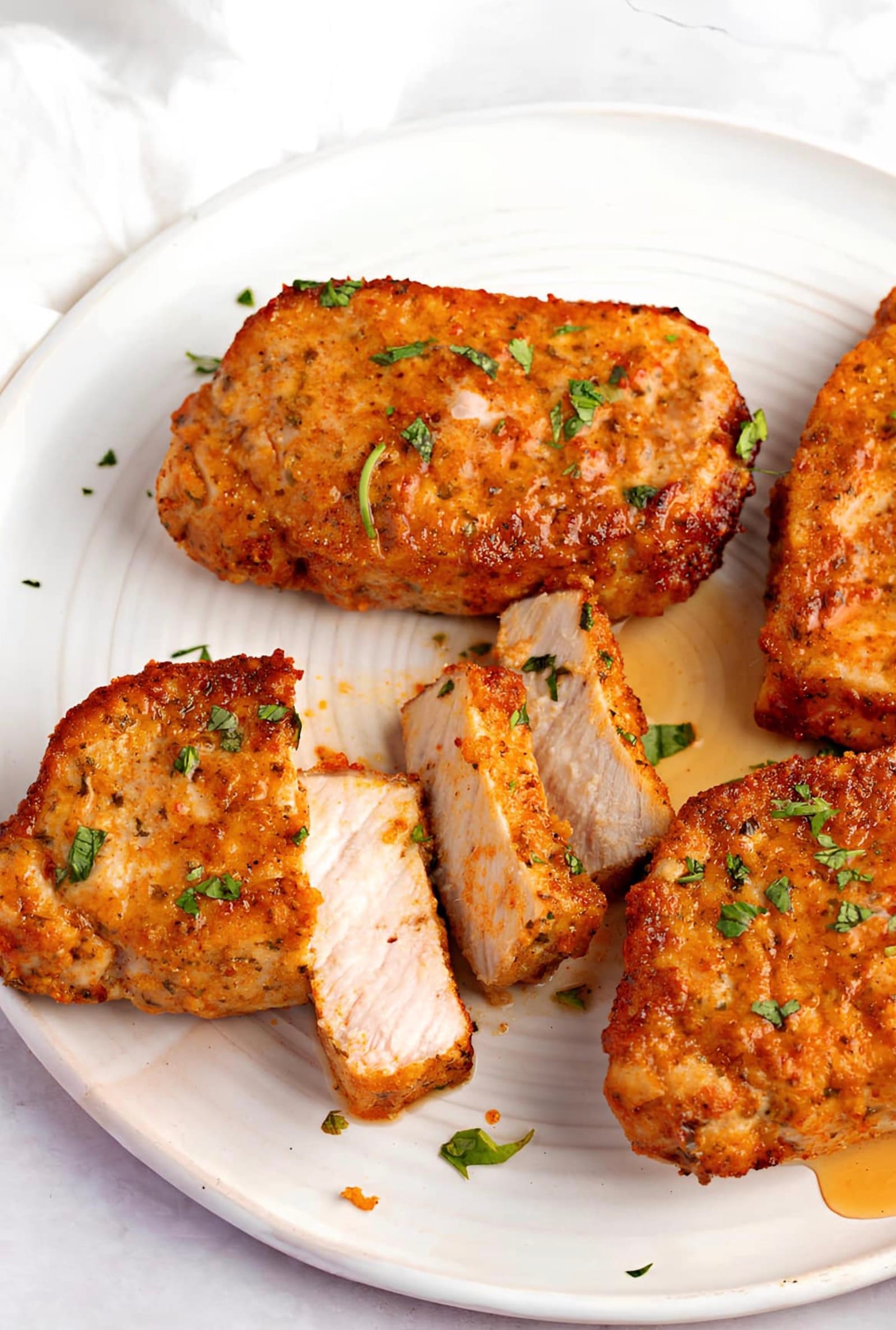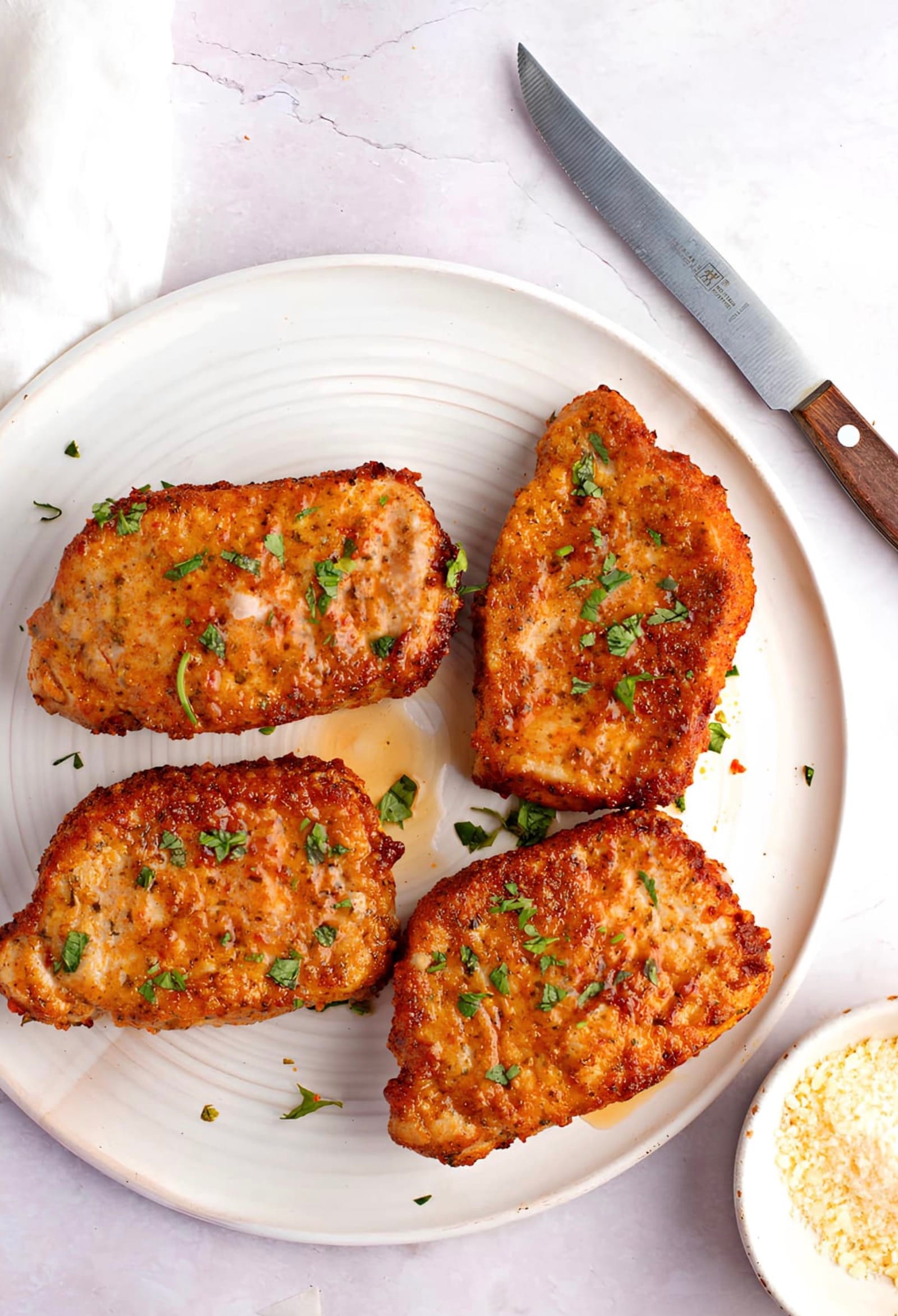 To make these air fryer pork chops more diabetes-friendly, you can try a few simple tweaks. Start by using less parmesan cheese – about 1/4 cup instead of 1/2 cup. This cuts down on saturated fat and calories.