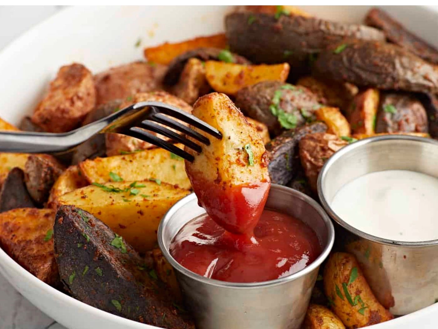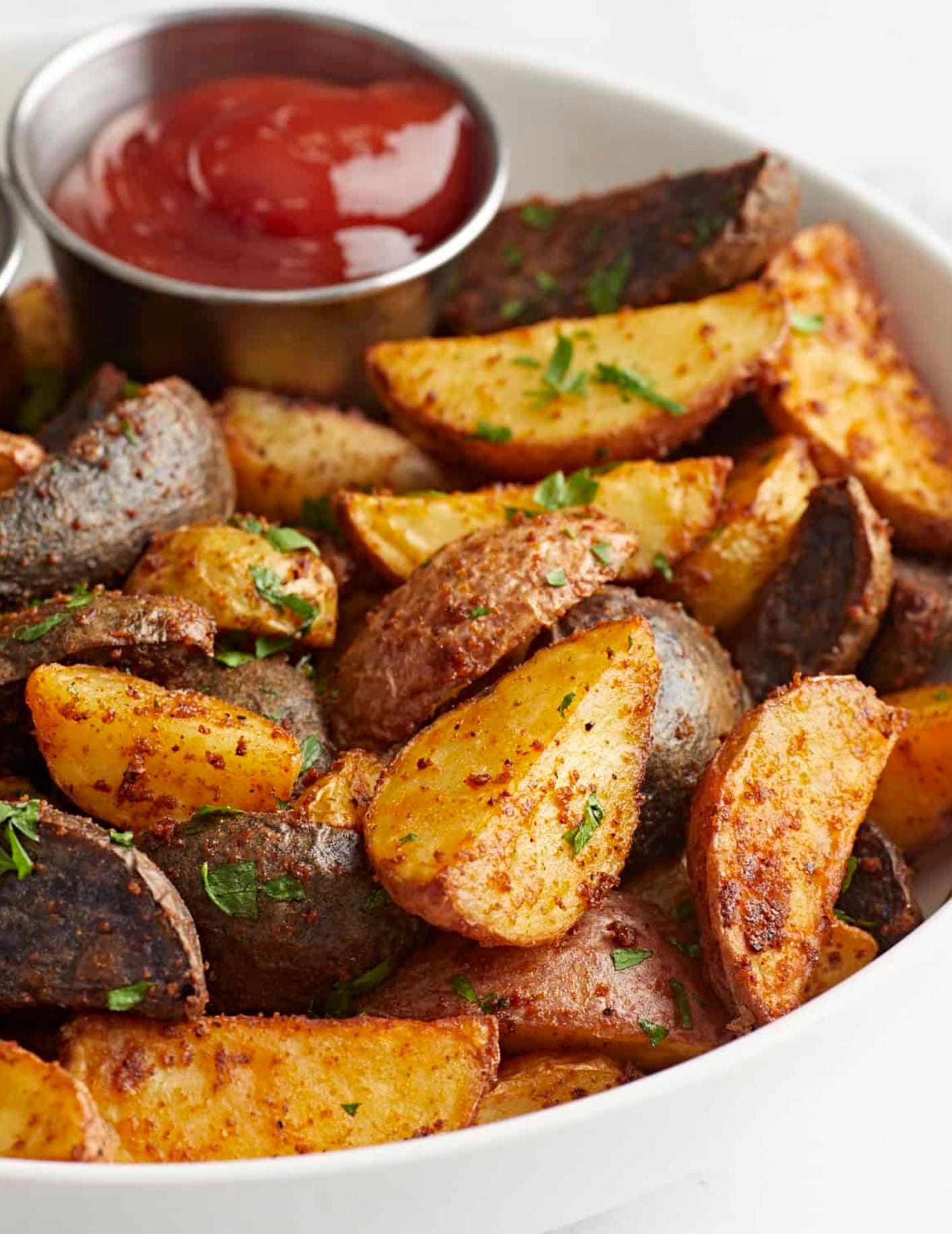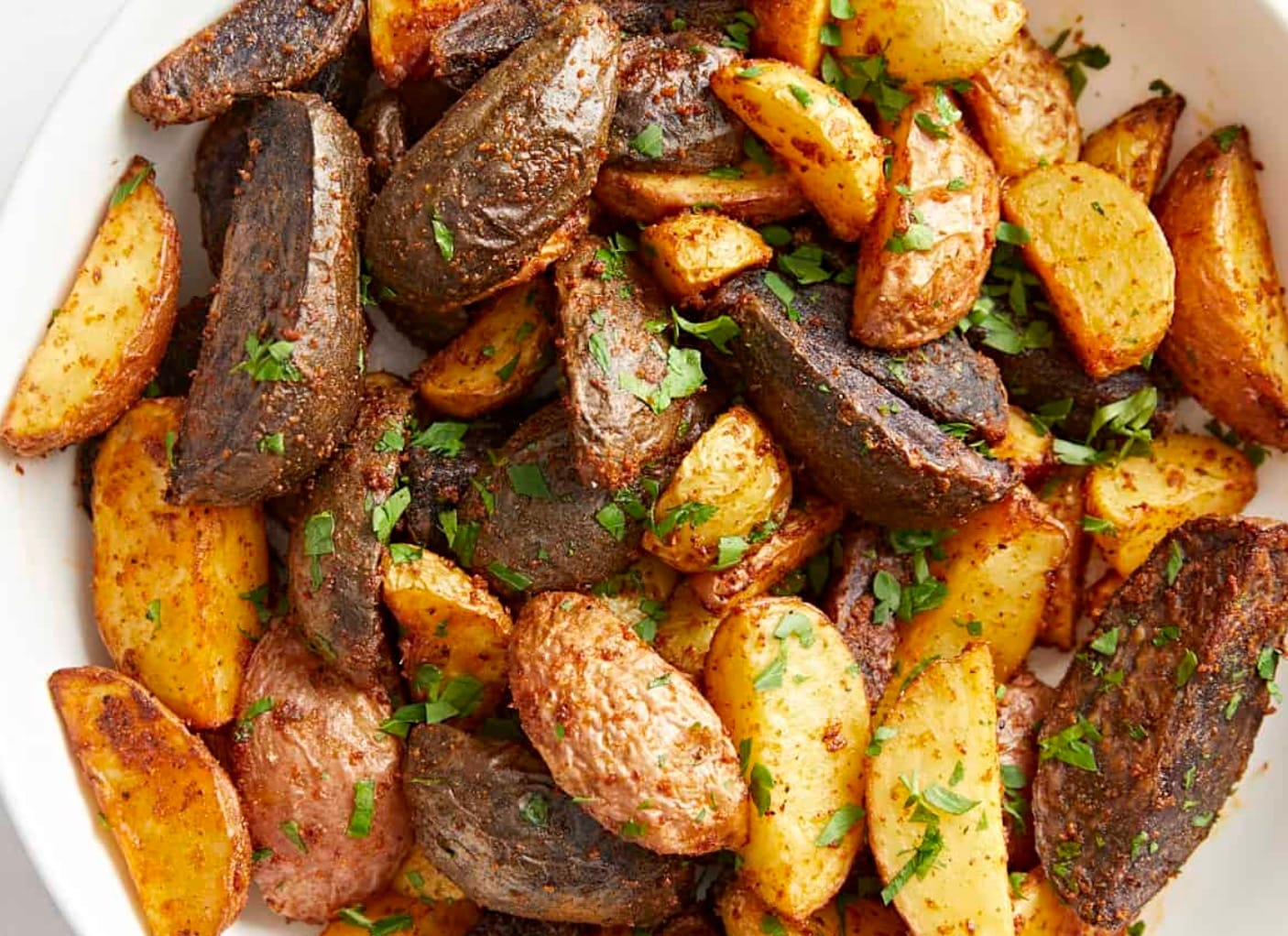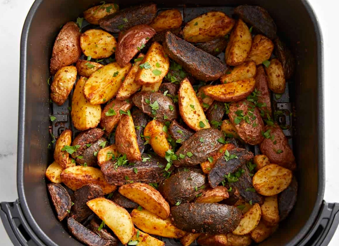 The recipe is super simple! You’ll toss the potatoes with oil and spices, then air fry them until crispy. The fresh parsley adds a nice pop of color at the end.