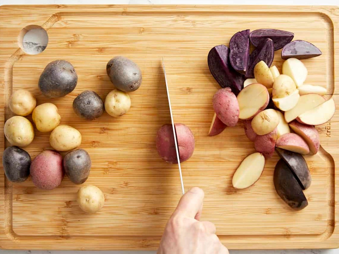 • Baby potatoes: Try red potatoes or Yukon golds cut into 1-inch chunks