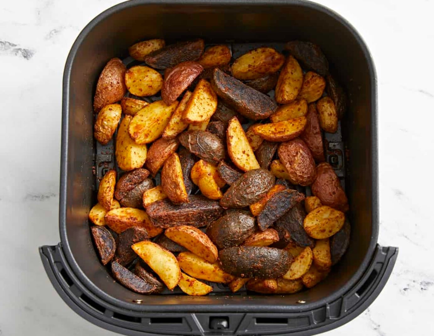 Shake the basket halfway through cooking. This helps the potatoes crisp up evenly on all sides.