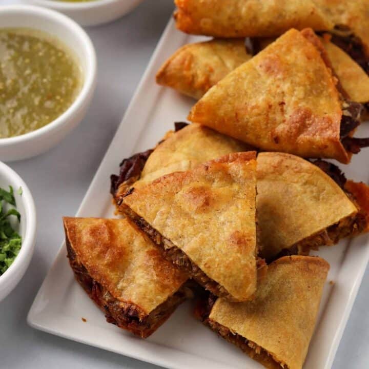 If you’re having a party, cut the quesadillas into small, thin triangles. This turns them into perfect finger foods for sharing. Everyone loves these bite-sized quesadillas at gatherings.