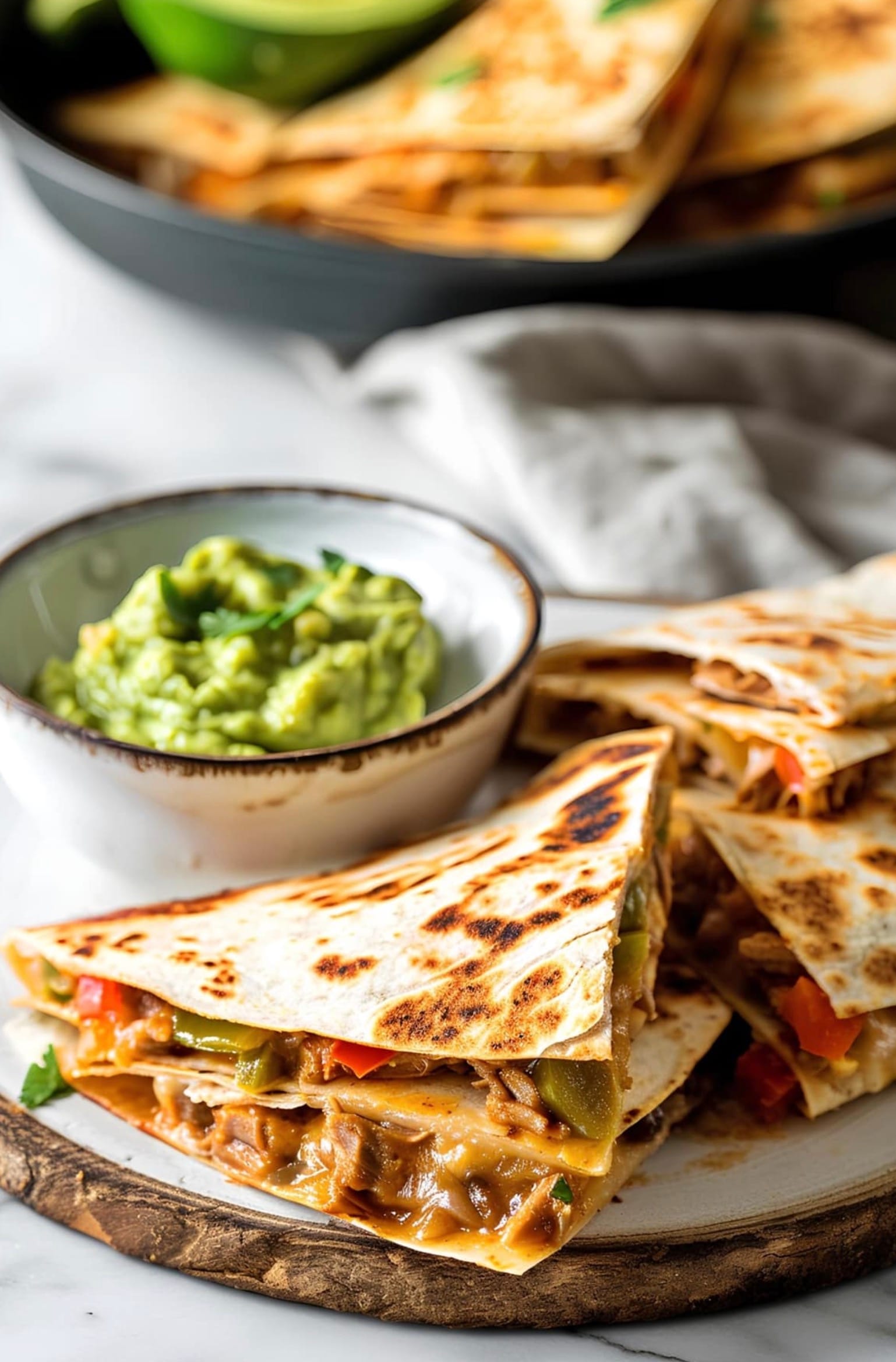 Slice each quesadilla into wedges. Serve right away with your favorite toppings. Try guacamole, sour cream, Greek yogurt, or salsa. Enjoy your crispy, cheesy quesadillas!