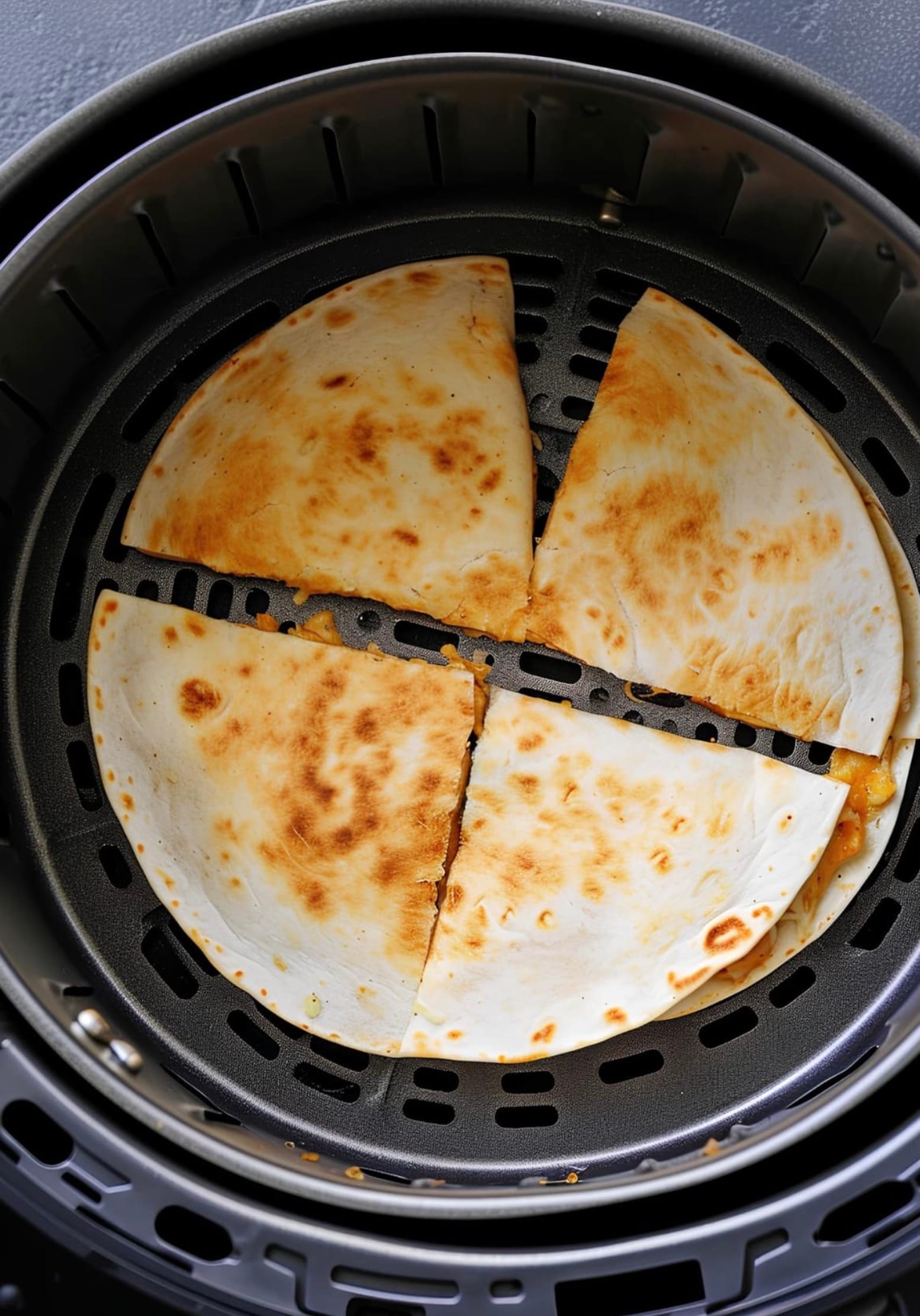 To reheat leftover quesadillas, pop them back in the air fryer for 2-3 minutes at 350°F. They’ll crisp right up!