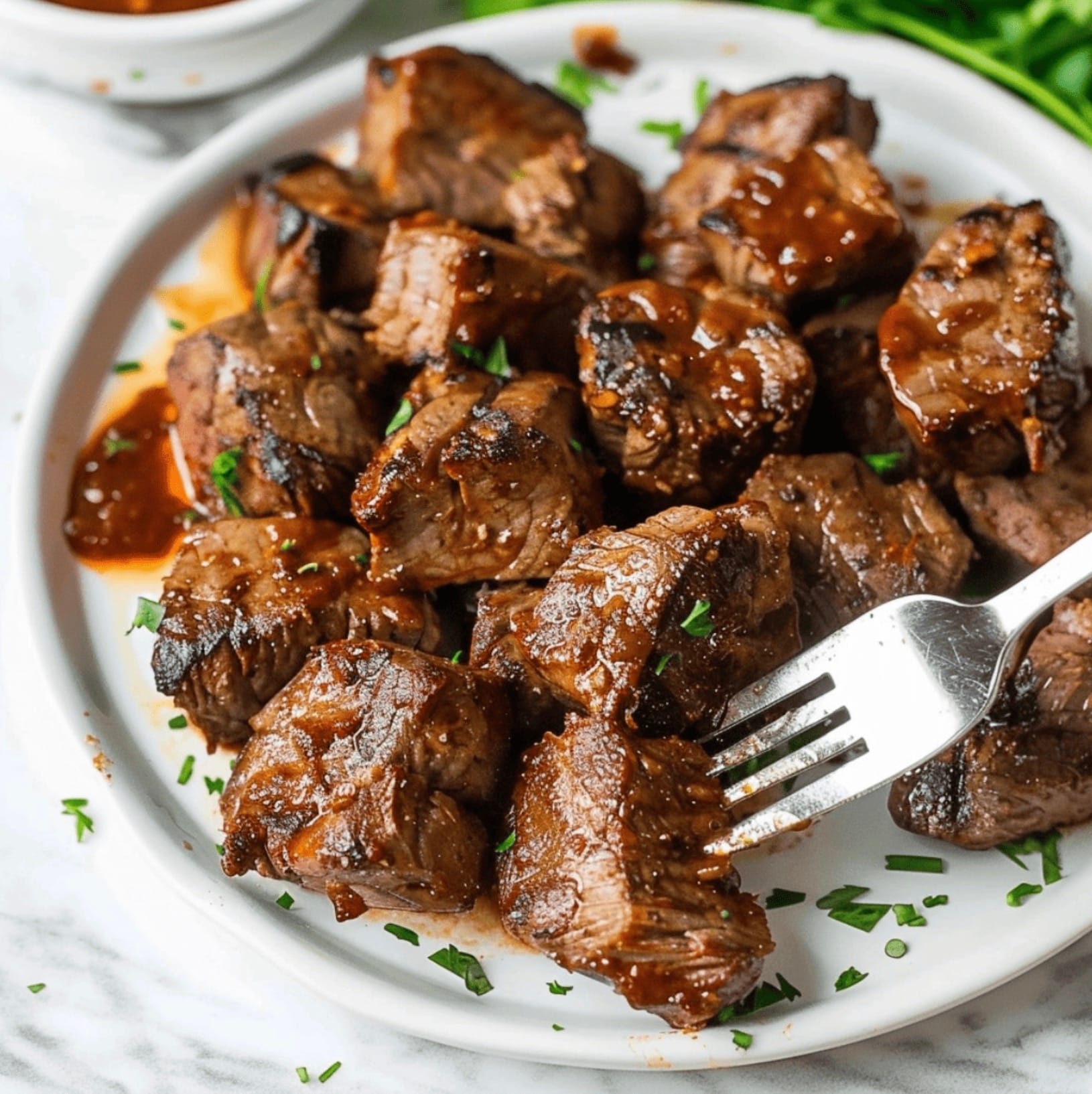 Serve your steak bites hot. Enjoy your tasty meal!