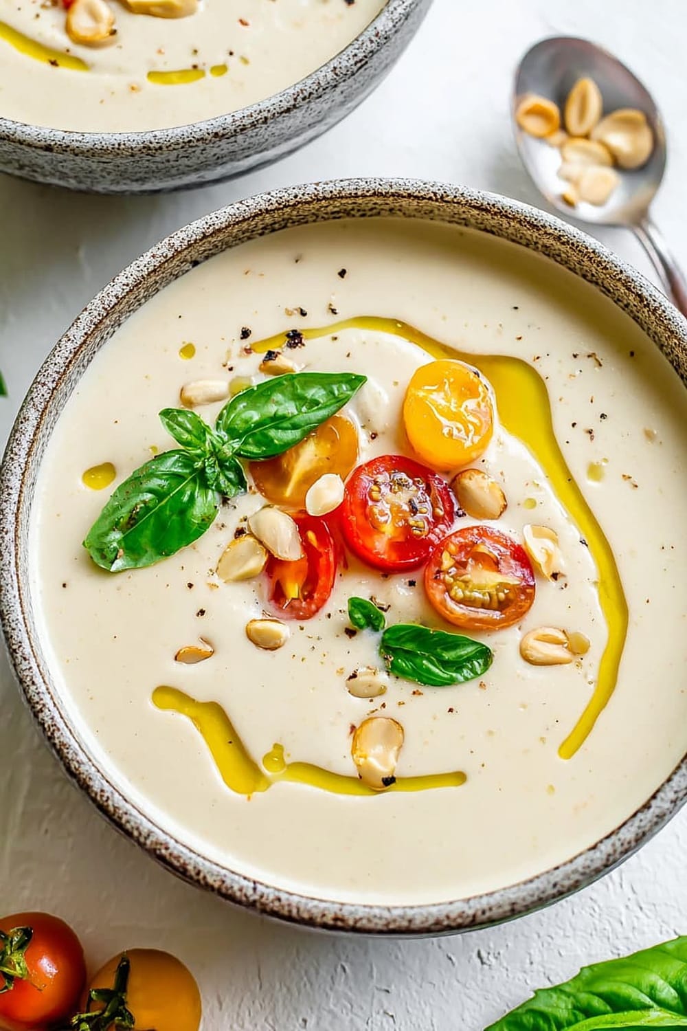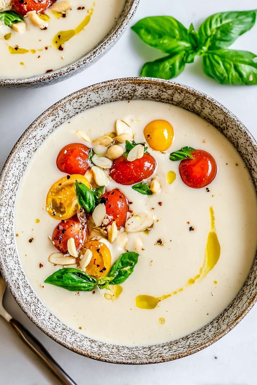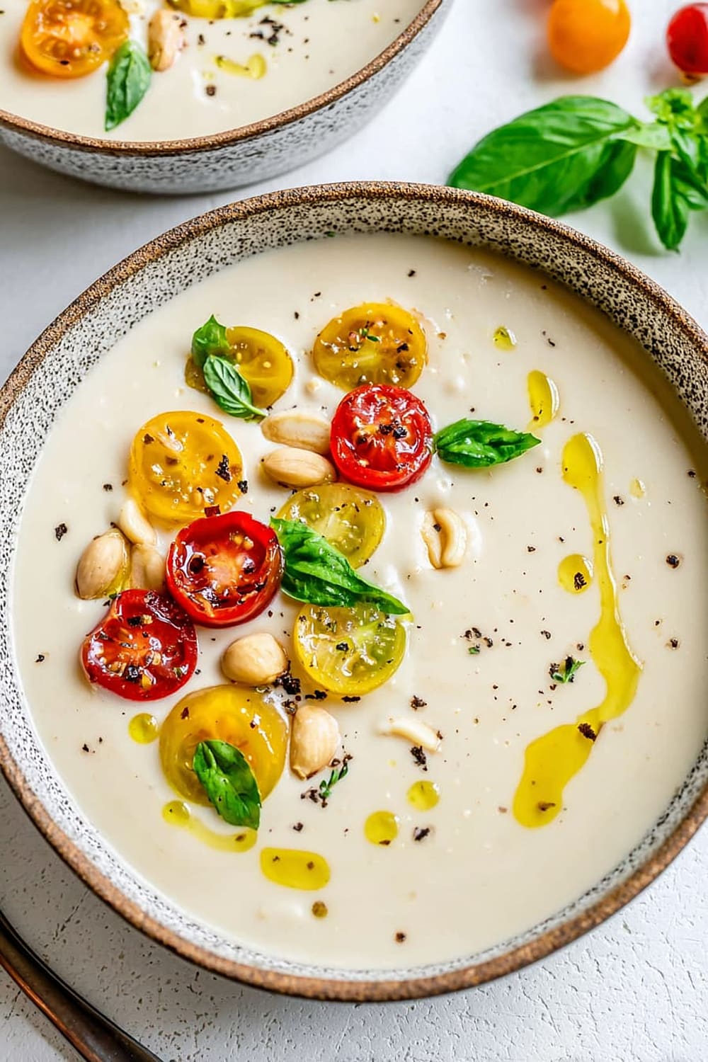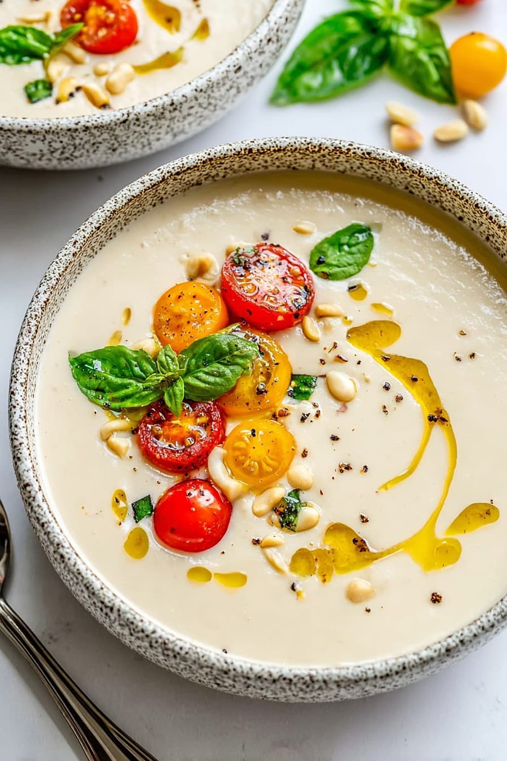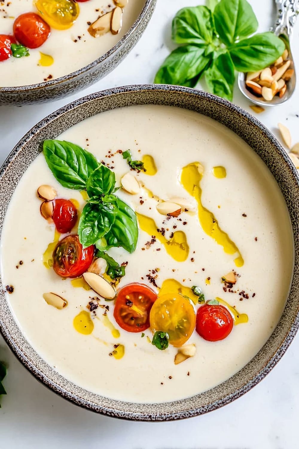 Albariño or Verdejo white wines complement the Spanish origins and nutty flavors beautifully, while a dry rosé provides a lovely contrast to the creamy richness. For non-alcoholic options, sparkling water with lemon cleanses the palate between spoonfuls, and iced green tea echoes the soup’s refreshing qualities. Spanish Marcilla coffee served after the meal honors the dish’s heritage.