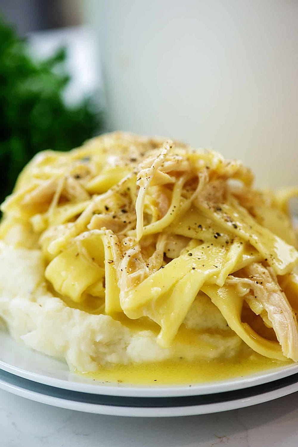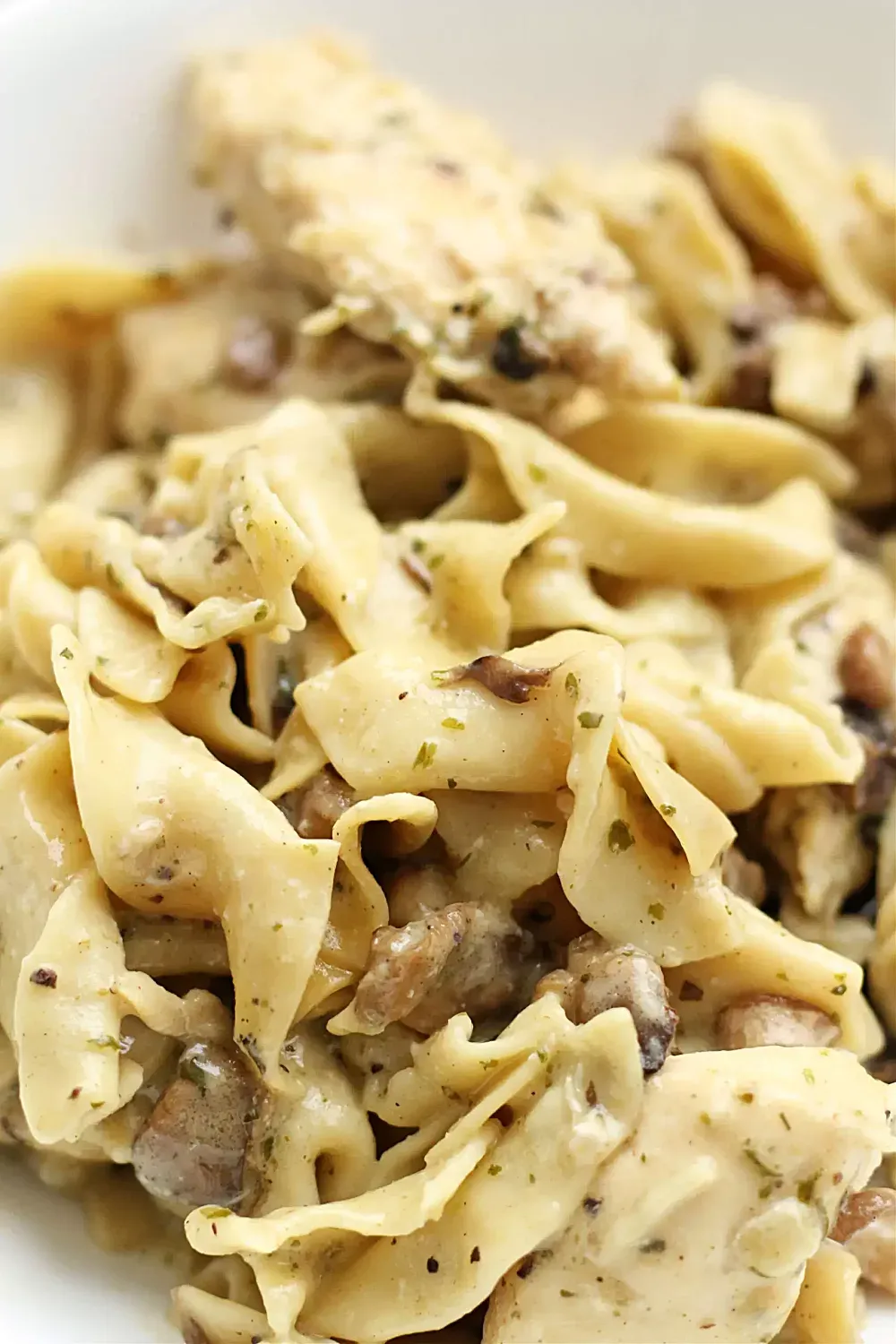 Start with a simple mixed greens salad with balsamic vinaigrette to awaken the palate. Follow with this hearty chicken and noodles as the main course, then finish with apple crisp or vanilla ice cream for a truly satisfying comfort food experience. For entertaining, add roasted Brussels sprouts with bacon and cranberry sauce for a feast that feels both rustic and elegant.