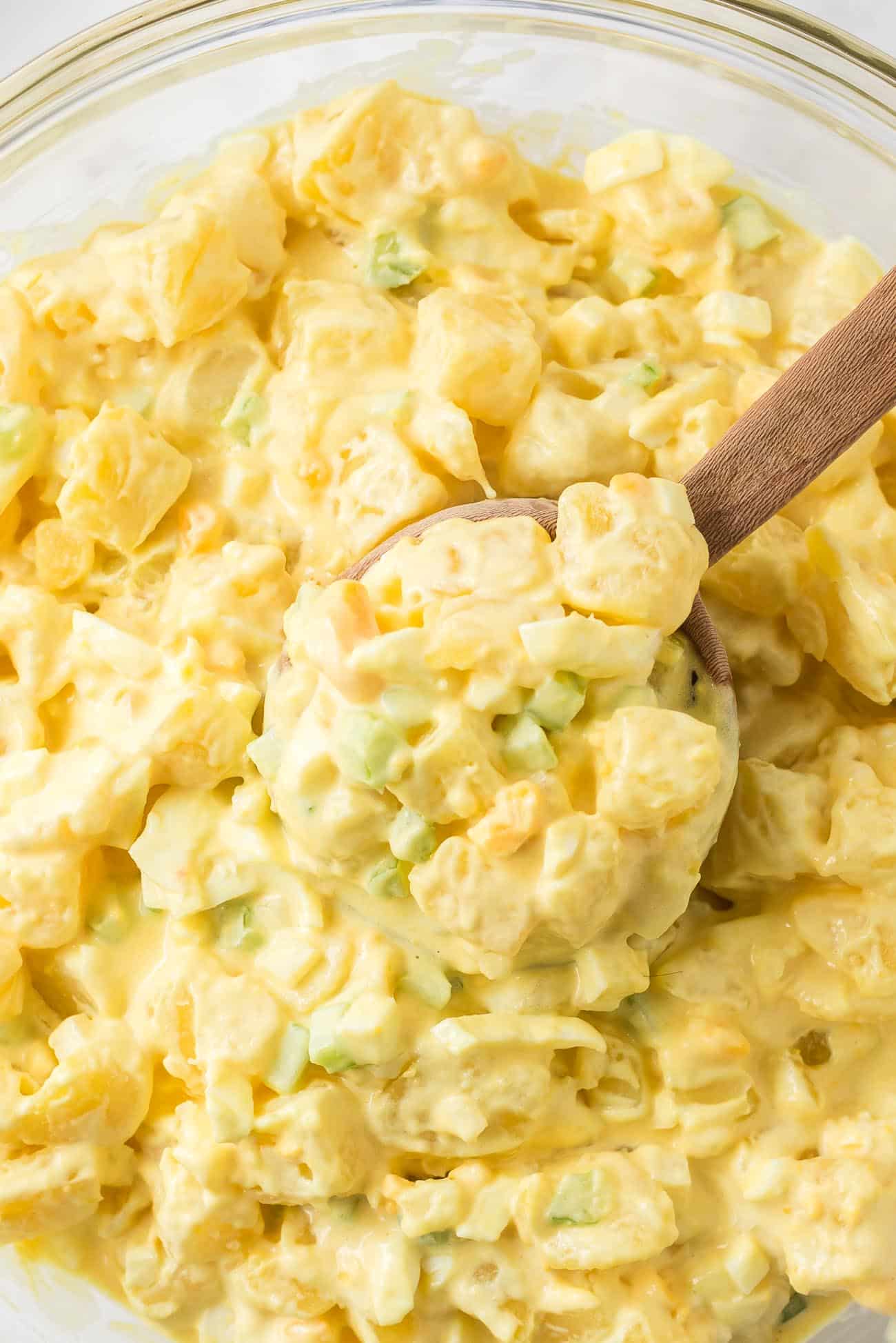 This potato salad is simple and balanced. It’s sweet and tangy, perfect for any summer party or event.
