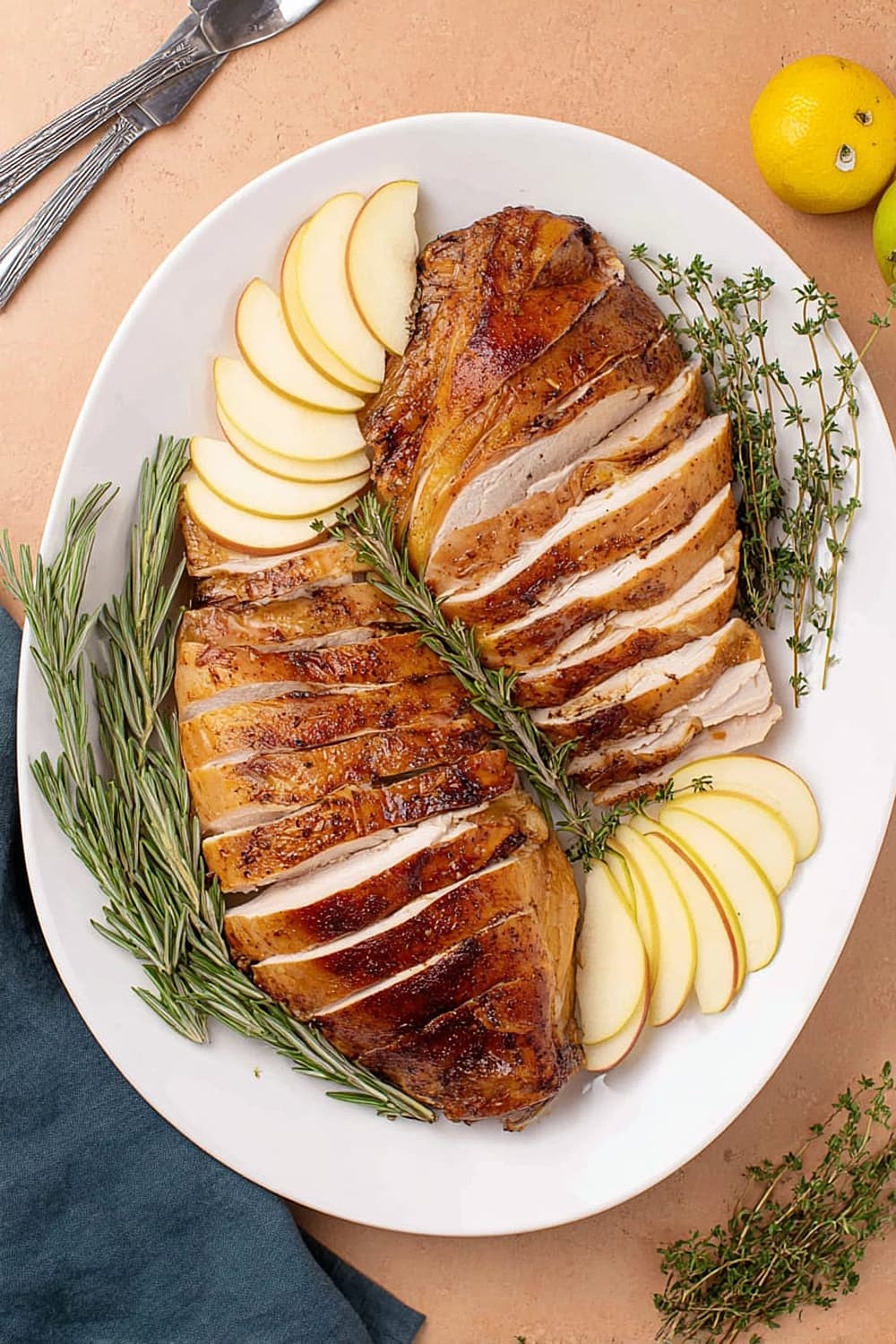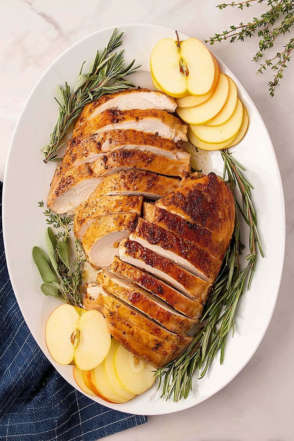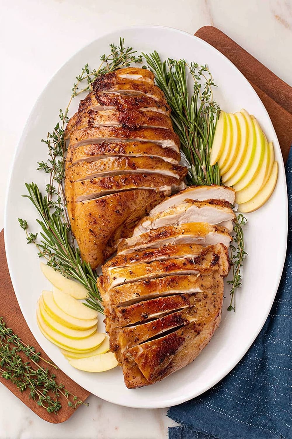For larger gatherings, this recipe doubles perfectly, but you’ll need a much larger brining container. Smaller turkey breasts (4-5 pounds) need only 3-4 hours of brining and about 20 minutes less cooking time.