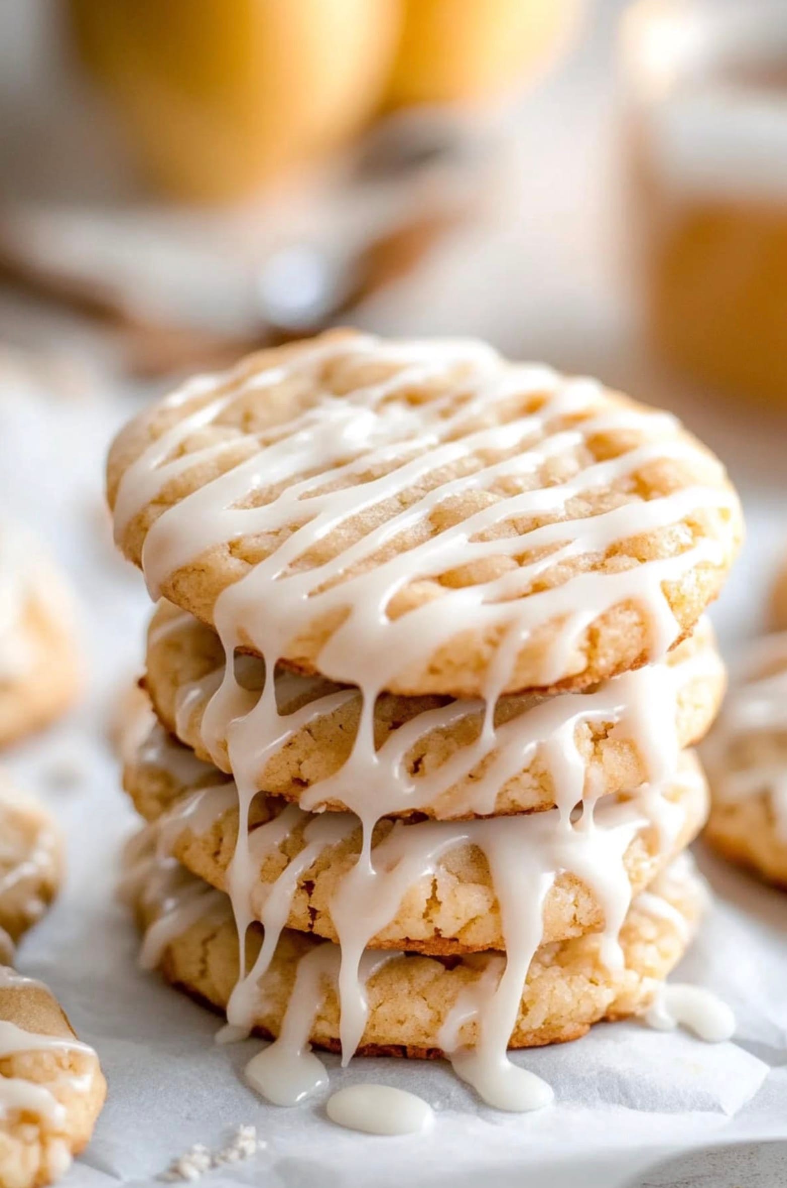 Let the cookies cool on the sheets for 5 minutes, then move them to a wire rack. For the glaze, mix powdered sugar, cinnamon, and a pinch of salt. Add apple cider until smooth.
