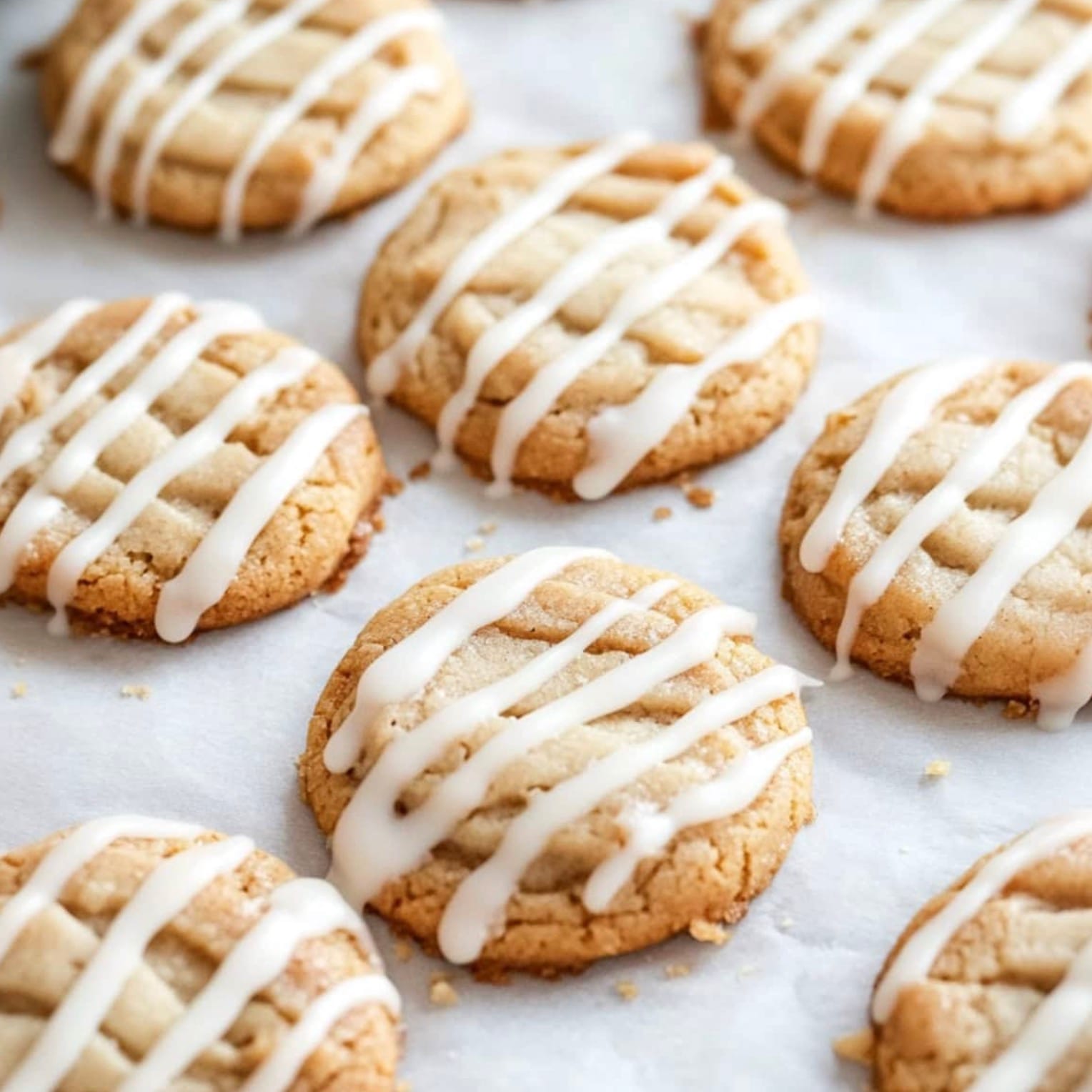 Once the cookies are cool, drizzle the glaze over them. Let it set for 20 minutes before you enjoy your tasty treats!