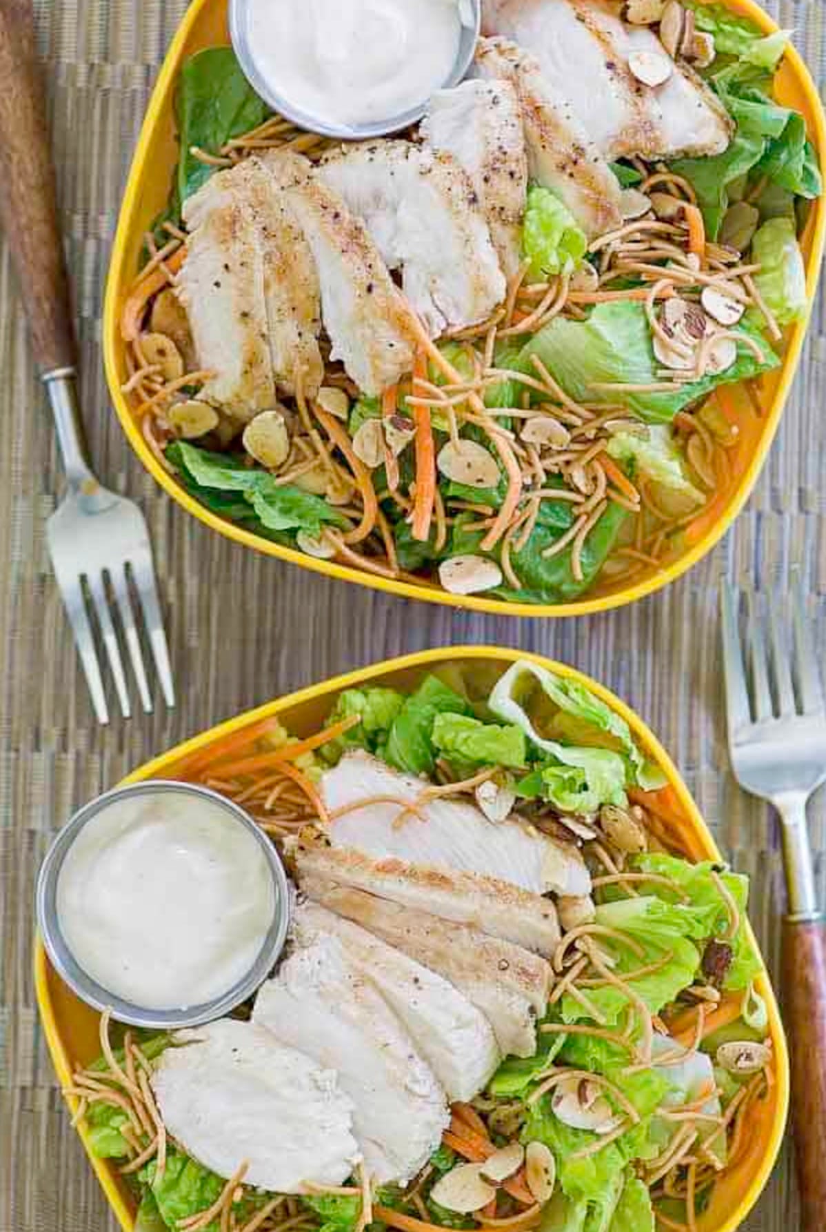 This salad has it all – juicy grilled chicken, crisp lettuce, crunchy almonds, and a tangy dressing. It’s perfect for lunch or dinner. You’ll get all the taste of eating out without leaving your kitchen. Give it a try and impress your family and friends with your cooking skills!