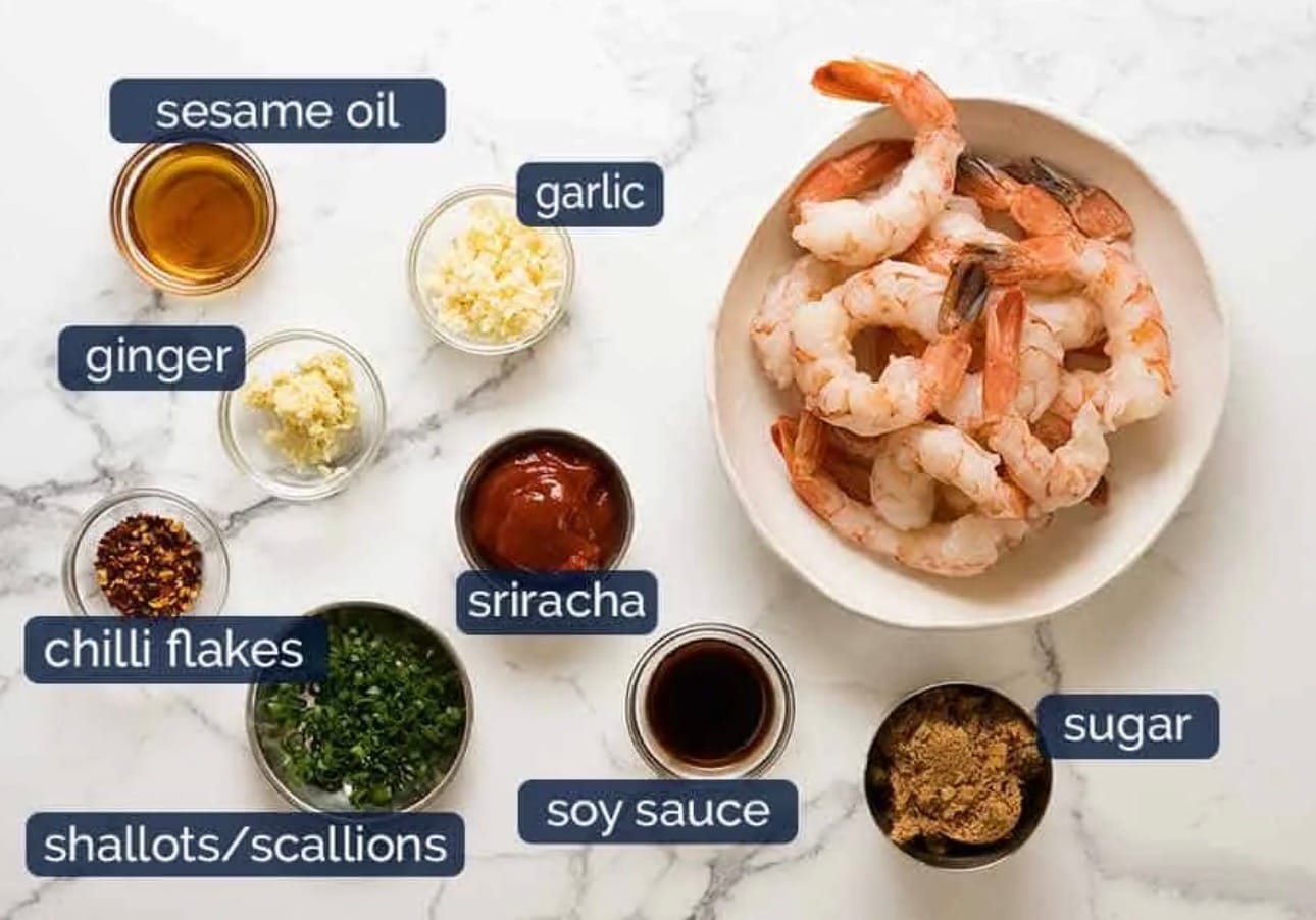 This flavorful Asian dish needs just a few key ingredients. You’ll use prawns as the star, with a mix of oils, aromatics, and sauces to create a tasty glaze.