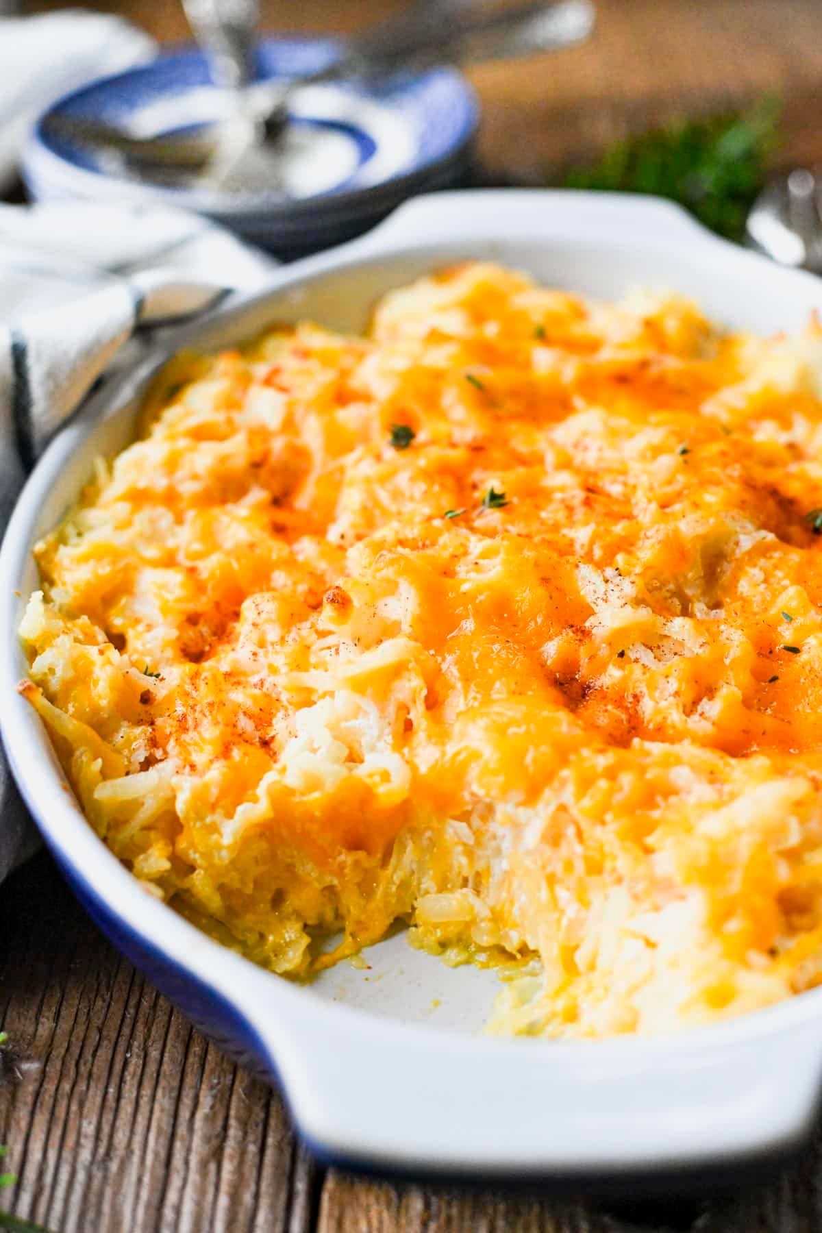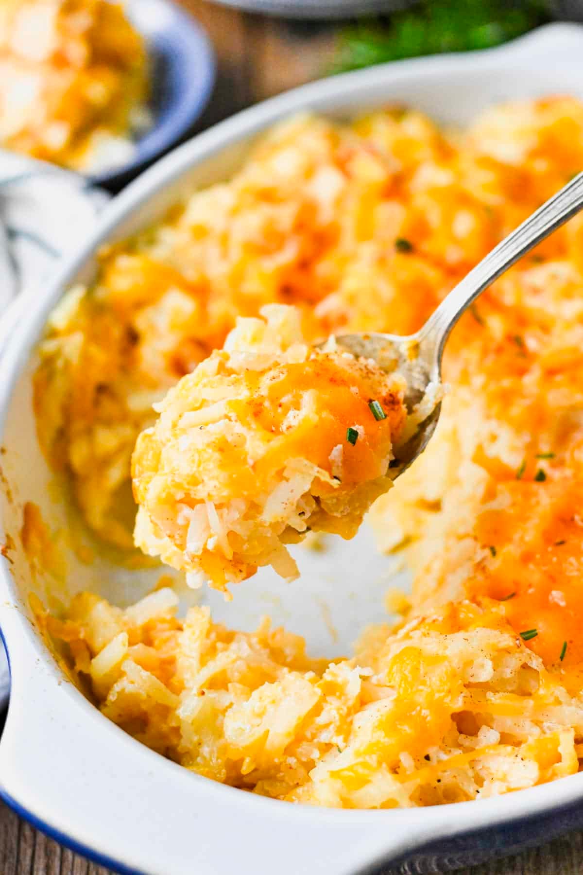 If you want, add some chopped parsley, chives, or a dash of paprika before serving. Enjoy your cheesy potato casserole!