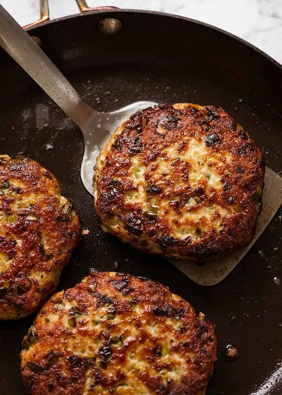 Chicken burgers can be bland, but not these avocado chicken burgers! They’re packed with flavor from Parmesan, garlic, and sage. These juicy patties cook up golden and crispy, making them a tasty upgrade from regular chicken burgers.