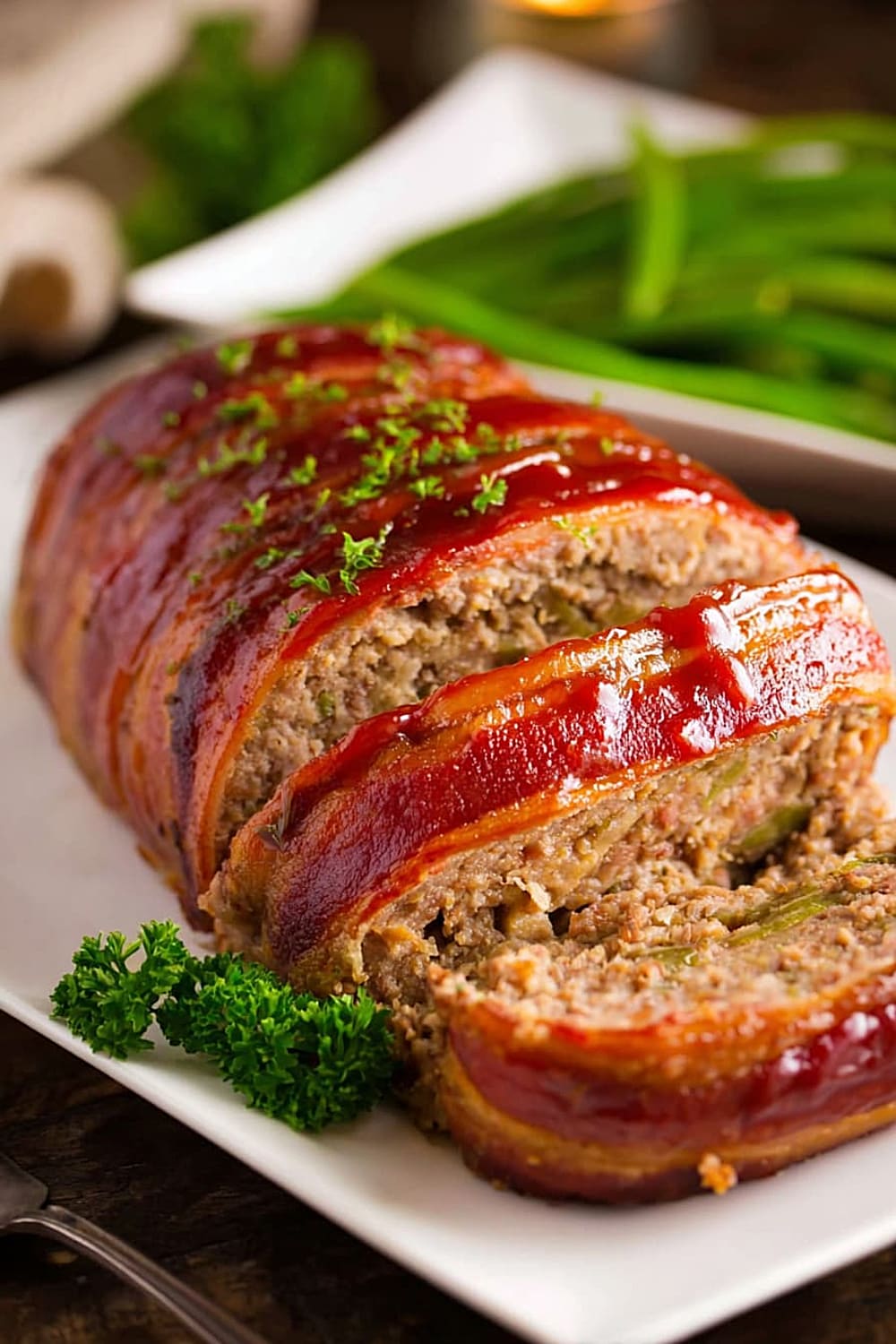 A medium-bodied red wine like Merlot or Cabernet Sauvignon complements the rich, smoky flavors of the bacon-wrapped meatloaf beautifully, while the wine’s tannins cut through the richness. For beer lovers, a brown ale or porter provides malty sweetness that balances the savory elements perfectly. Non-alcoholic options include sparkling apple cider or iced tea with lemon to cleanse the palate between bites.