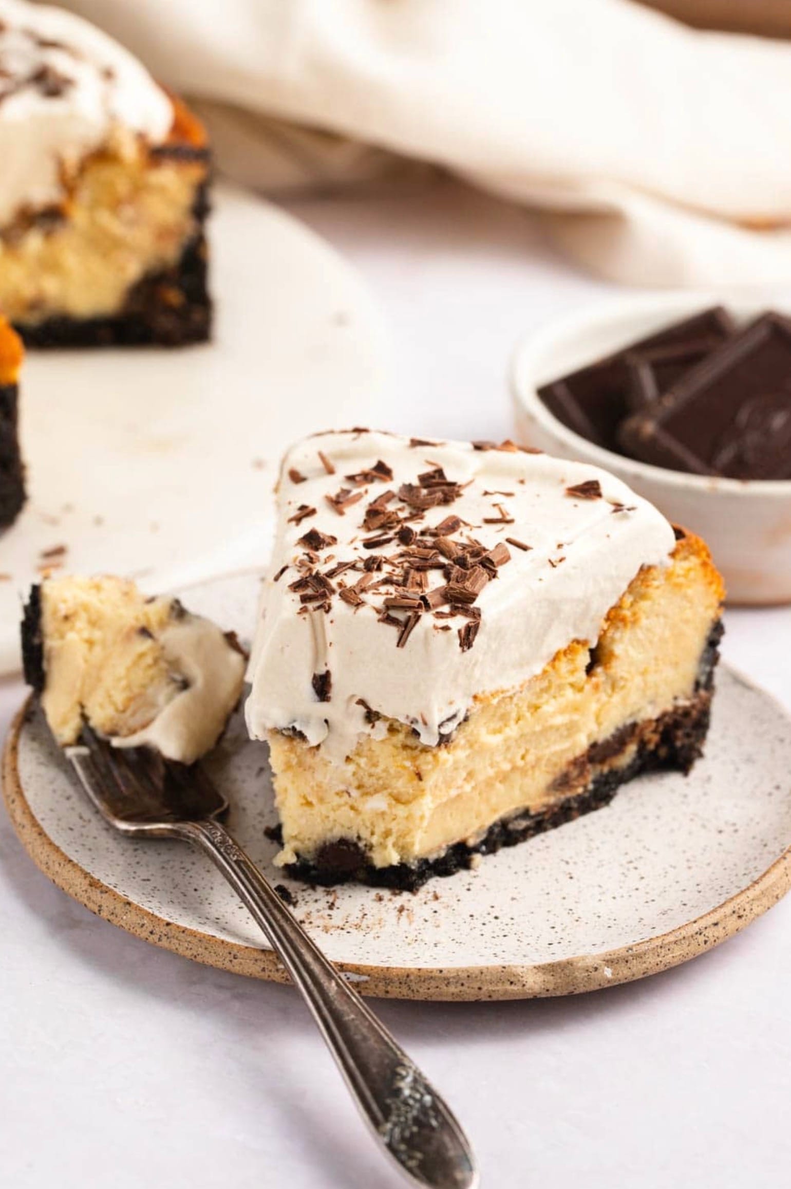 For a boozy twist, brush some extra Baileys on top of the cooled cheesecake before adding the coffee cream topping.