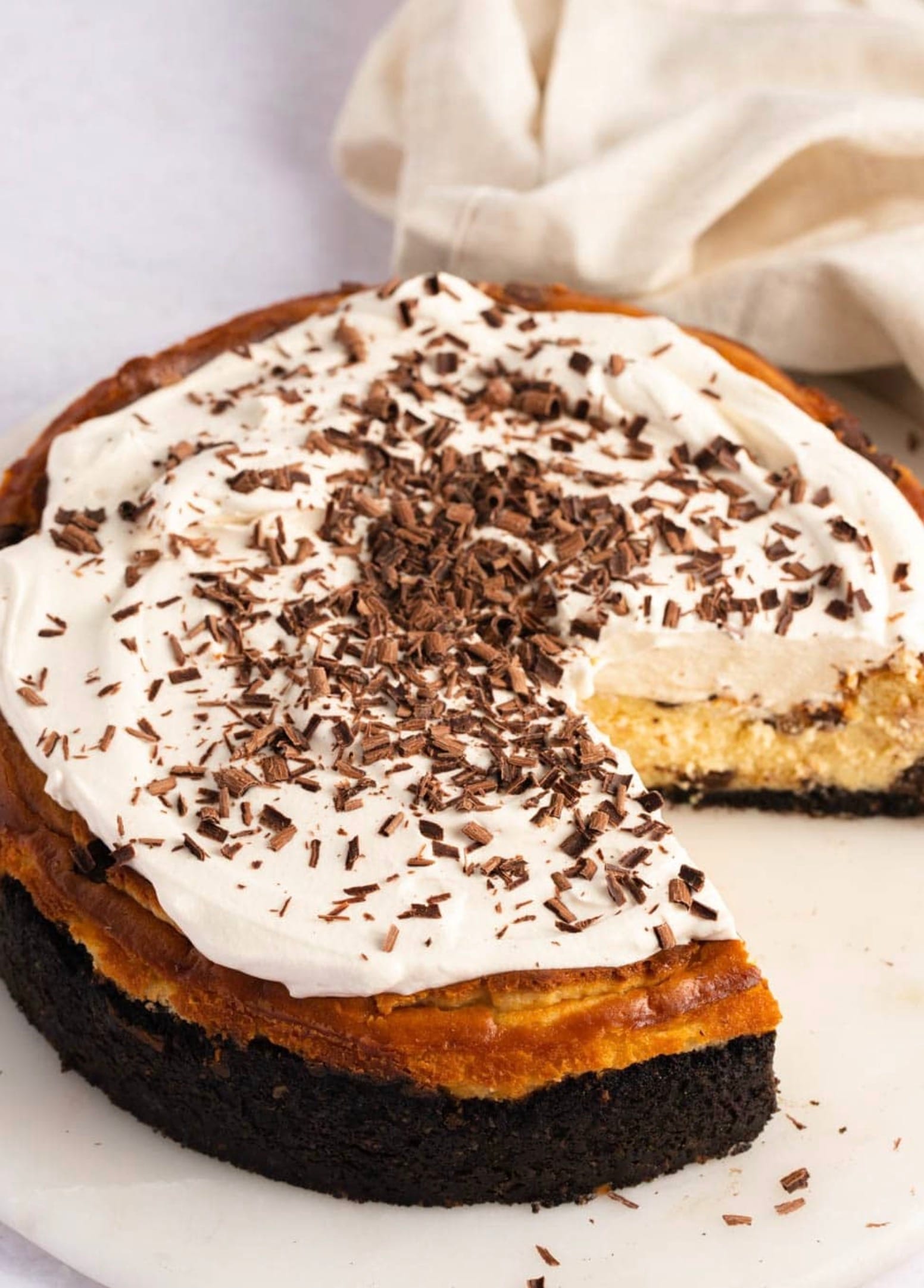 For the crust, swap out the Oreos for almond flour mixed with cocoa powder. This change cuts down on carbs and adds healthy fats. You can use about 2 cups of almond flour and 1/4 cup of cocoa powder.