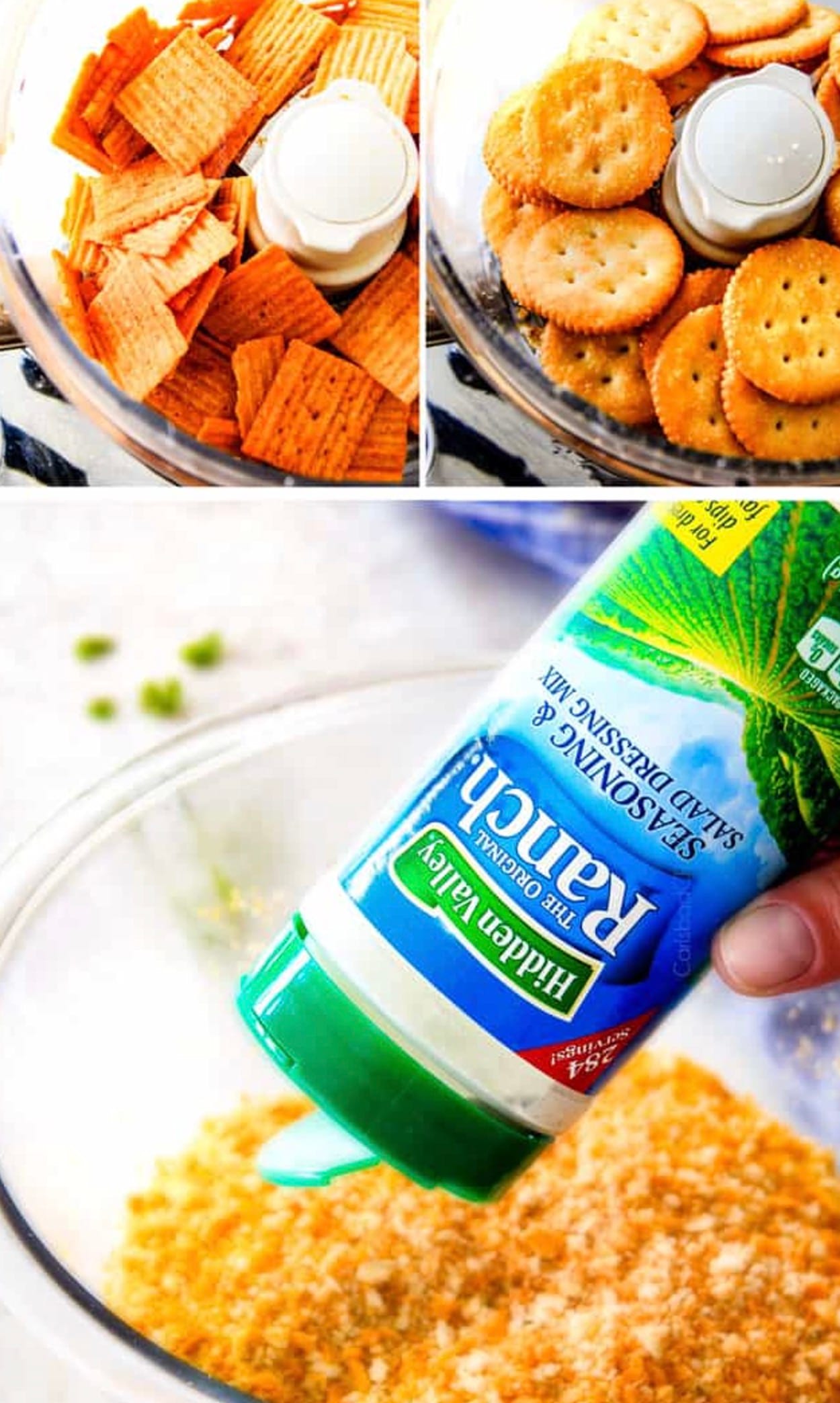 This combo creates a crunchy, cheesy coating. The mix of crackers and panko gives a great texture. The cheese and ranch seasoning pack in lots of flavor.