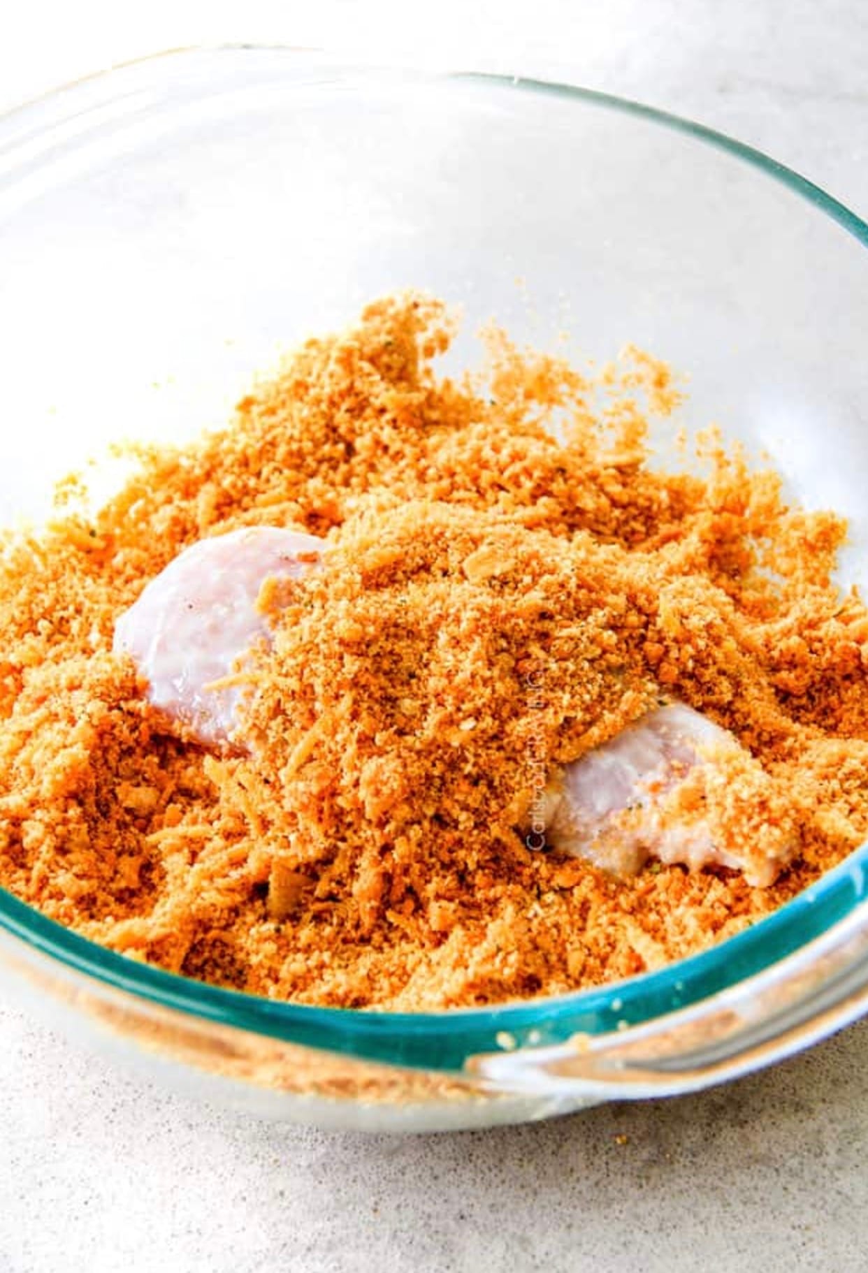 Use tongs to handle the chicken when breading. This keeps your hands clean and prevents the breading from getting clumpy.