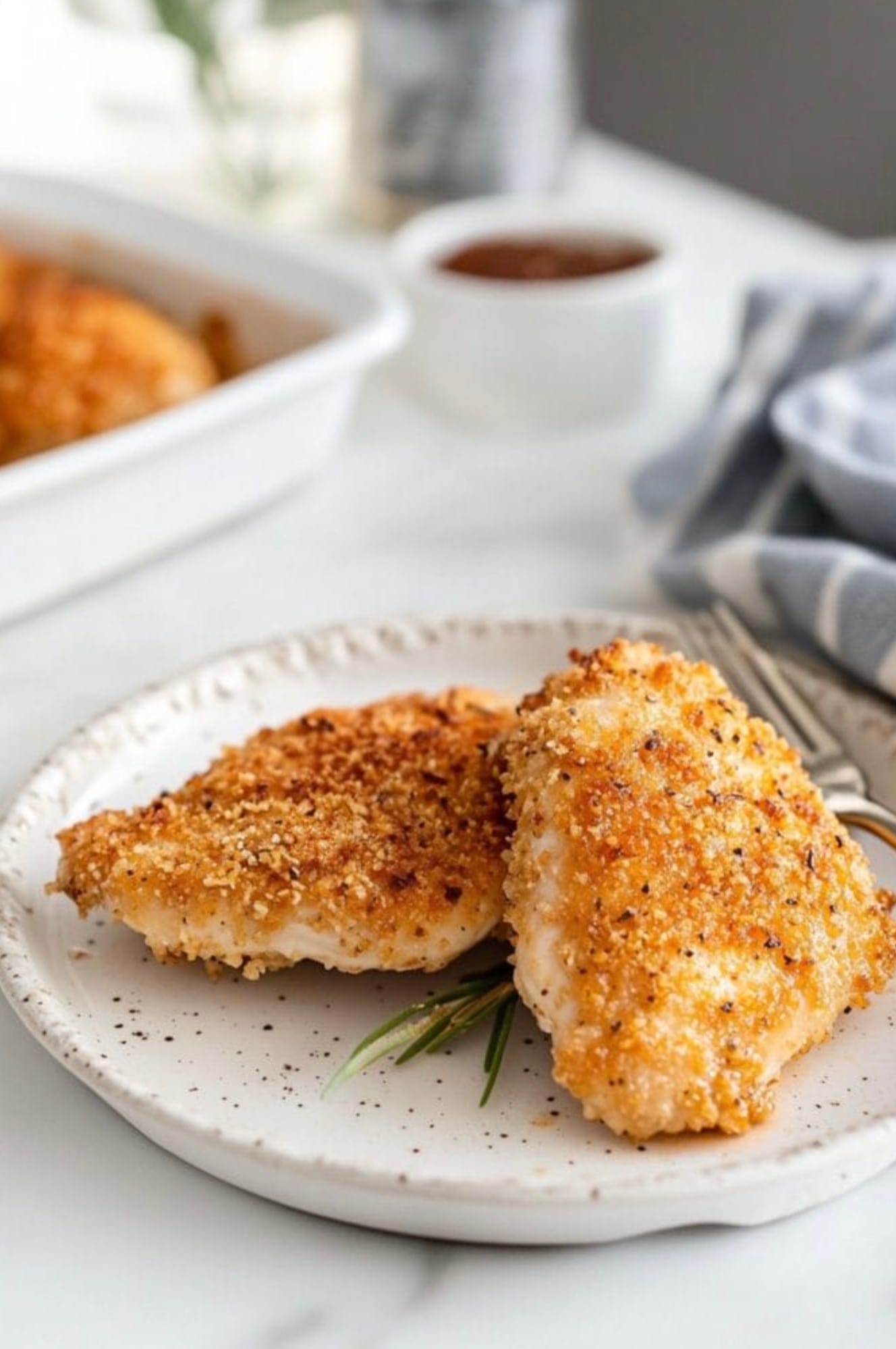 The panko breadcrumbs are the star of the show. They give your chicken that amazing crunch. The herbs and spices add lots of flavor.