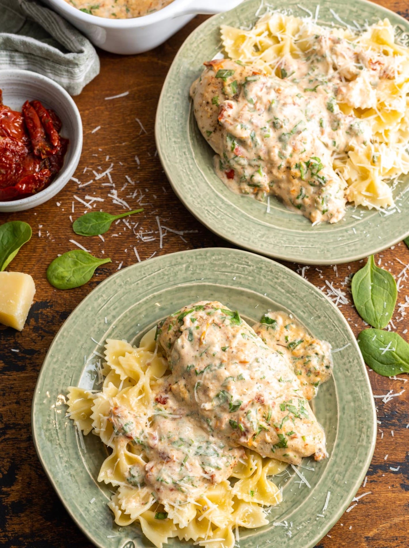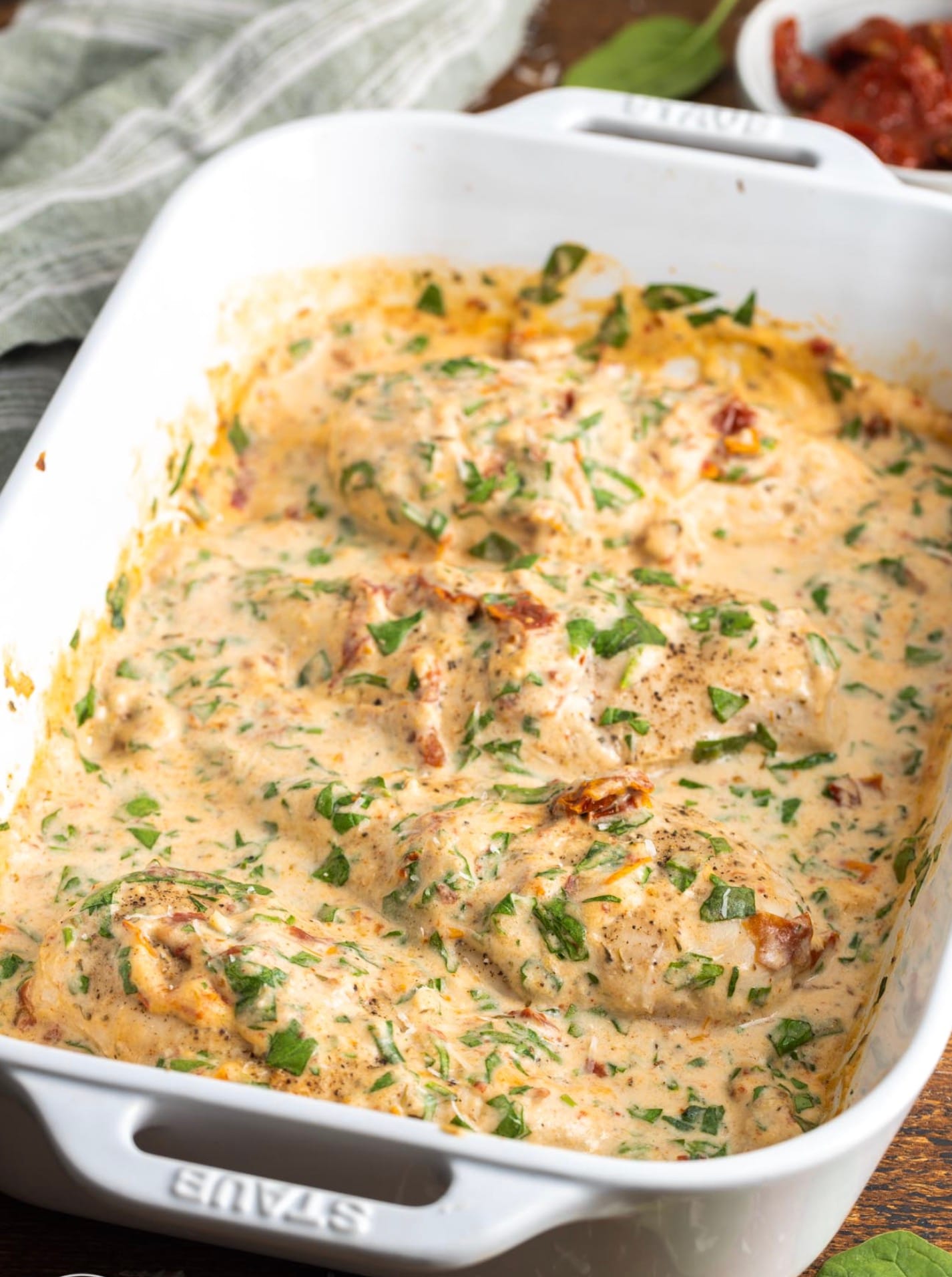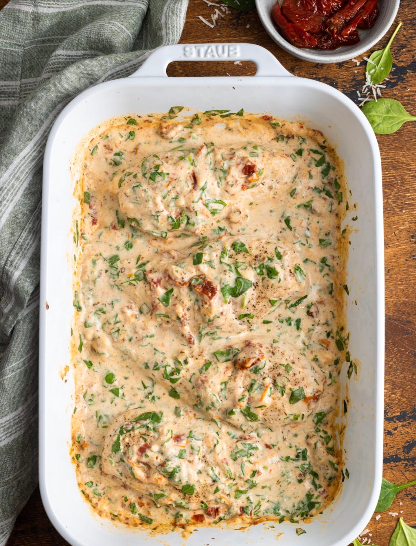 You can easily swap out ingredients in this Baked Tuscan Chicken recipe. Here are some tasty options: