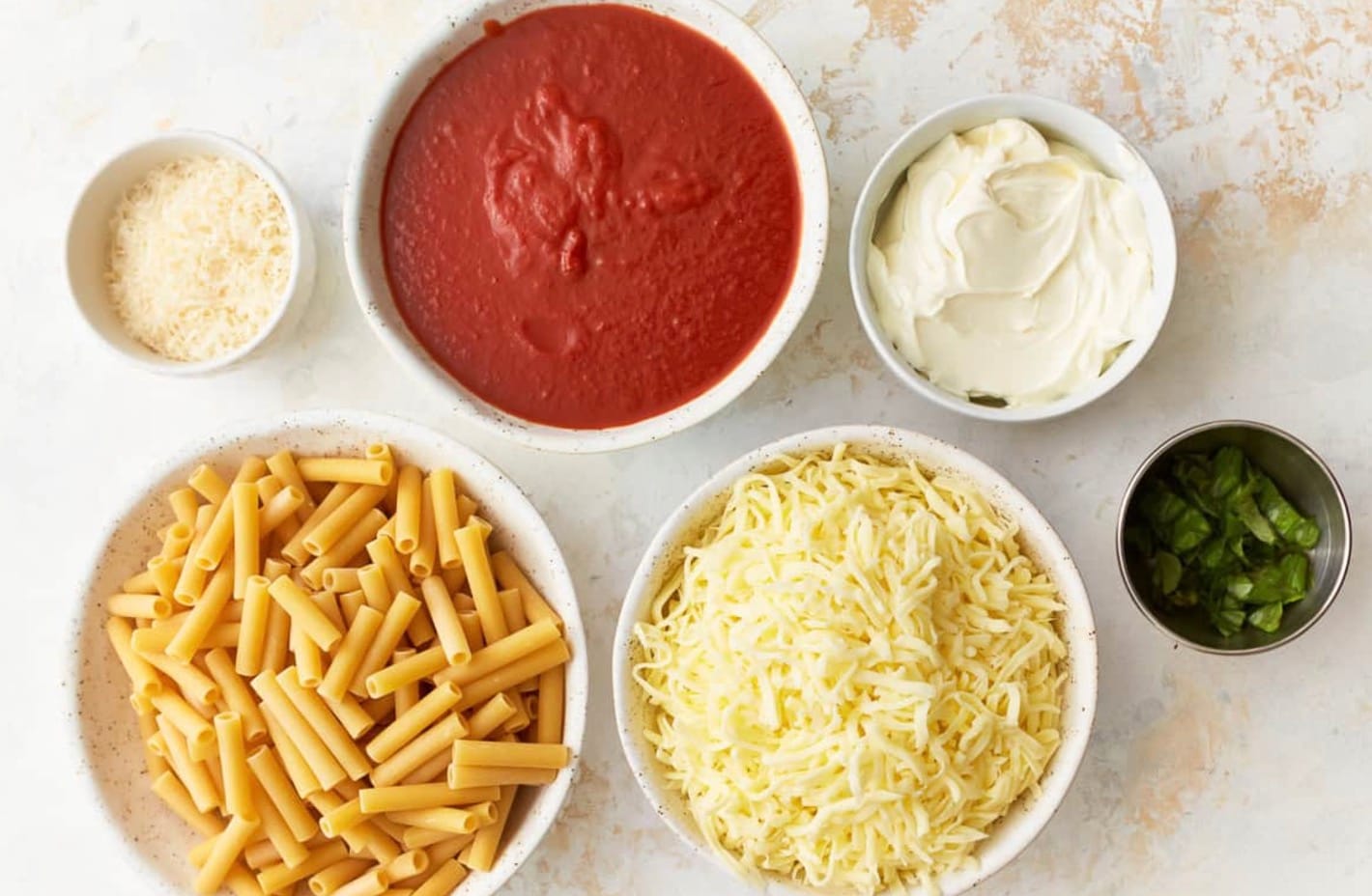 Here’s what you’ll need to make this tasty baked ziti without ricotta:
