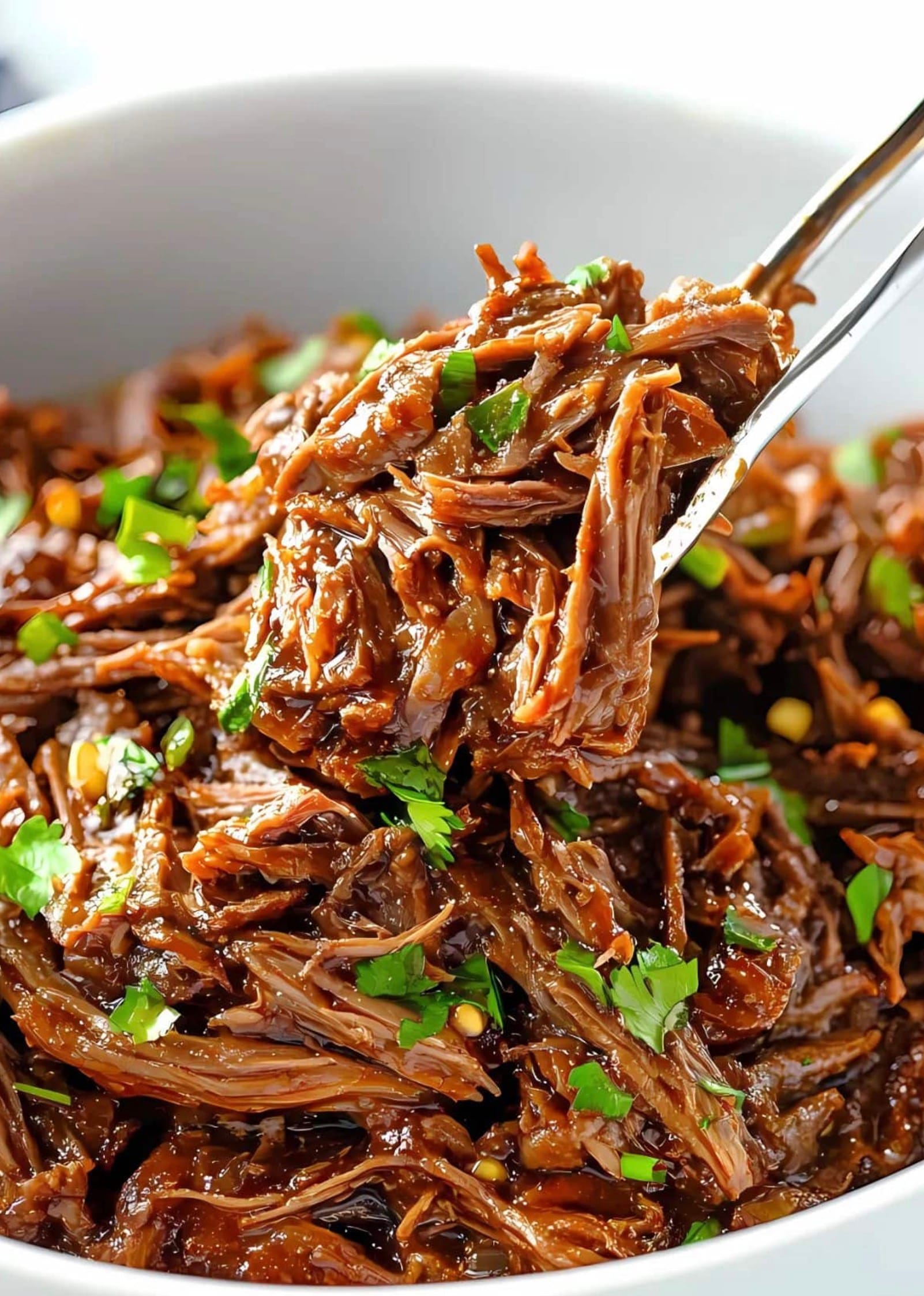 Serve your barbacoa beef with tongs or a slotted spoon. It’s great in tacos, burritos, or quesadillas. You can add cilantro, onions, and lime if you like.