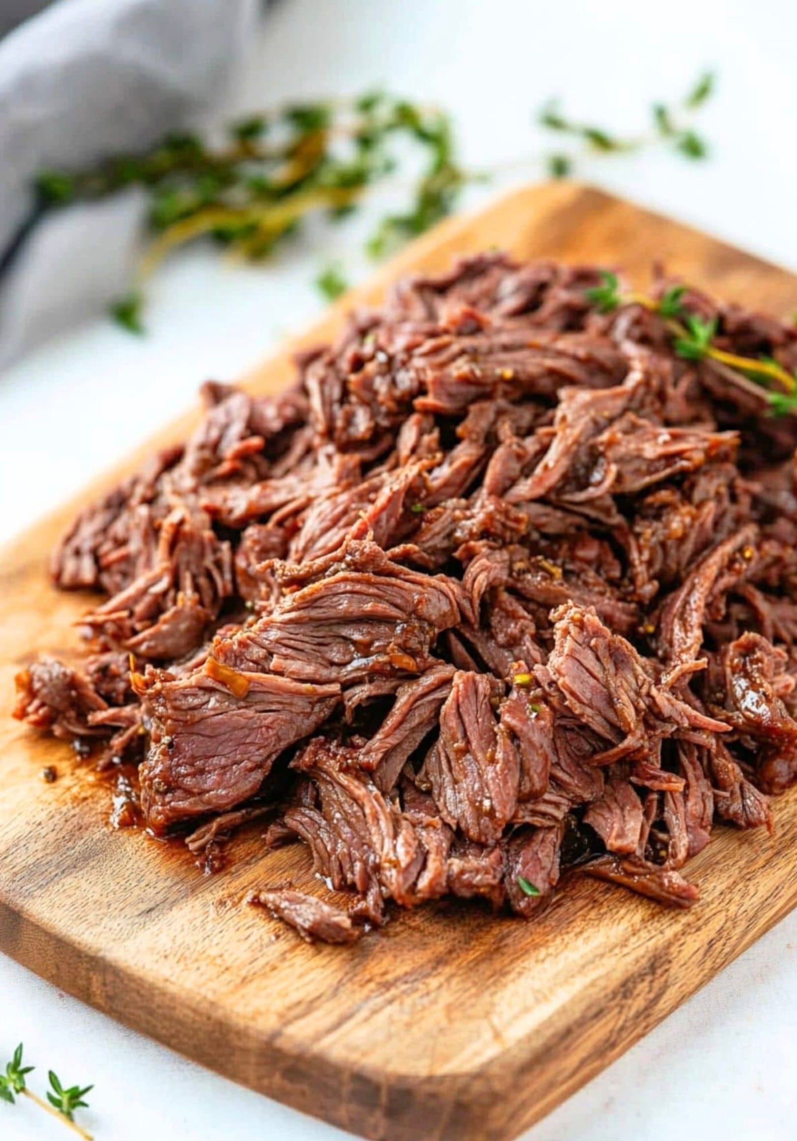 Let the shredded beef soak in the juices for at least 10 minutes before serving. This makes it extra flavorful and juicy.