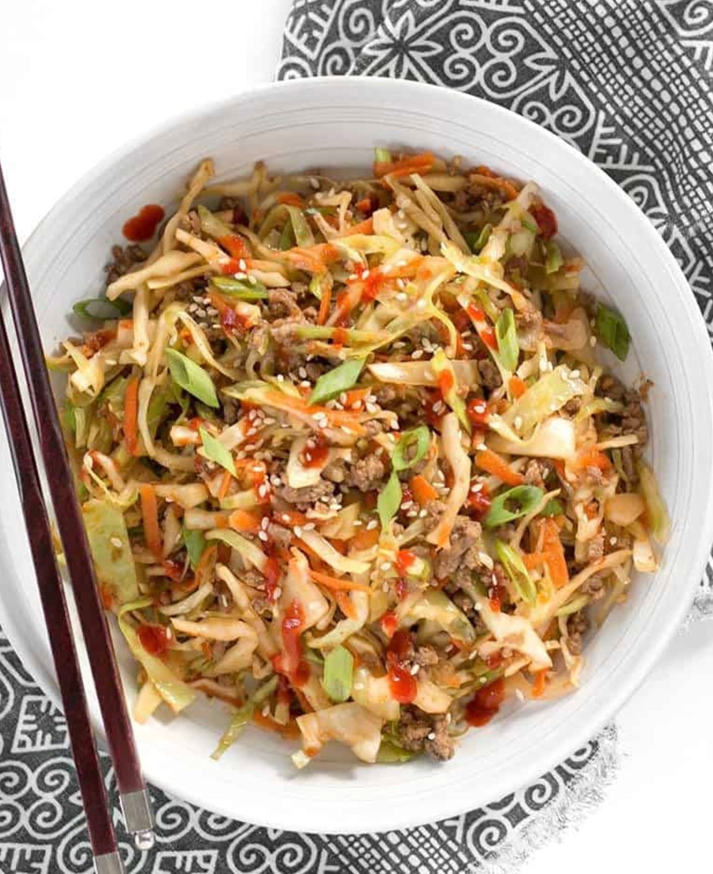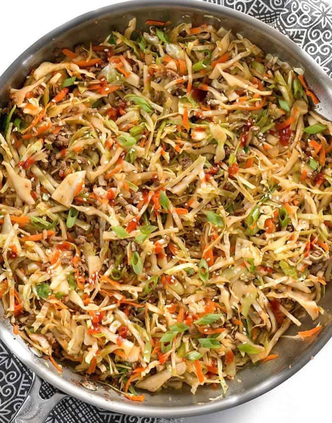 You can easily swap out ingredients in this beef and cabbage stir fry to suit your taste or what you have on hand. Try ground pork or turkey instead of beef for a different flavor.